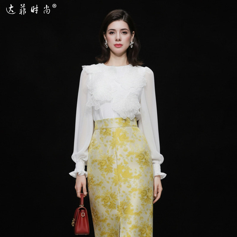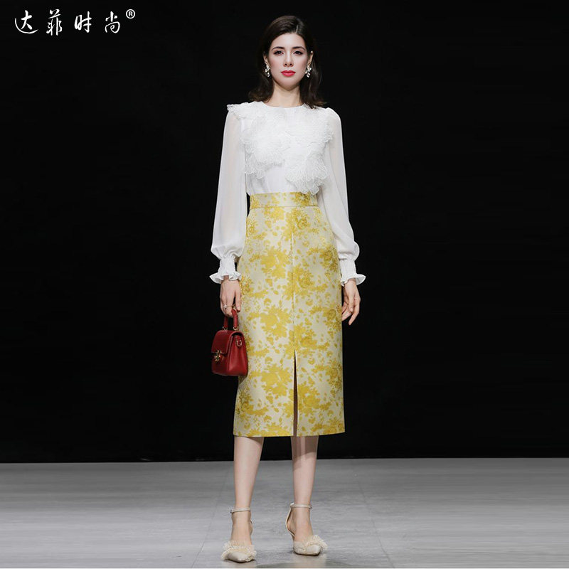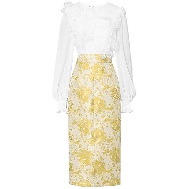 春季女装2026新款时尚气质雪纺灯笼袖衬衫上衣包臀裙长裙套装