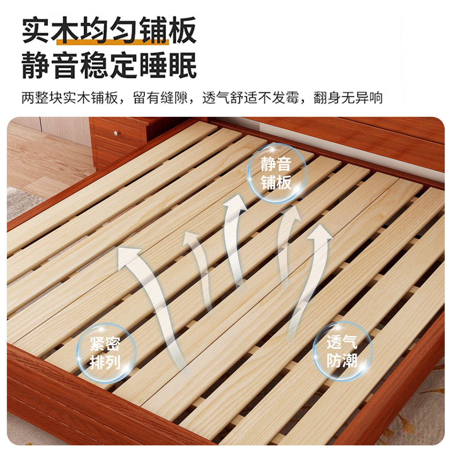 新中式实木床1.5米家用主卧双人床1.8m出租房用1米2单人床经济型