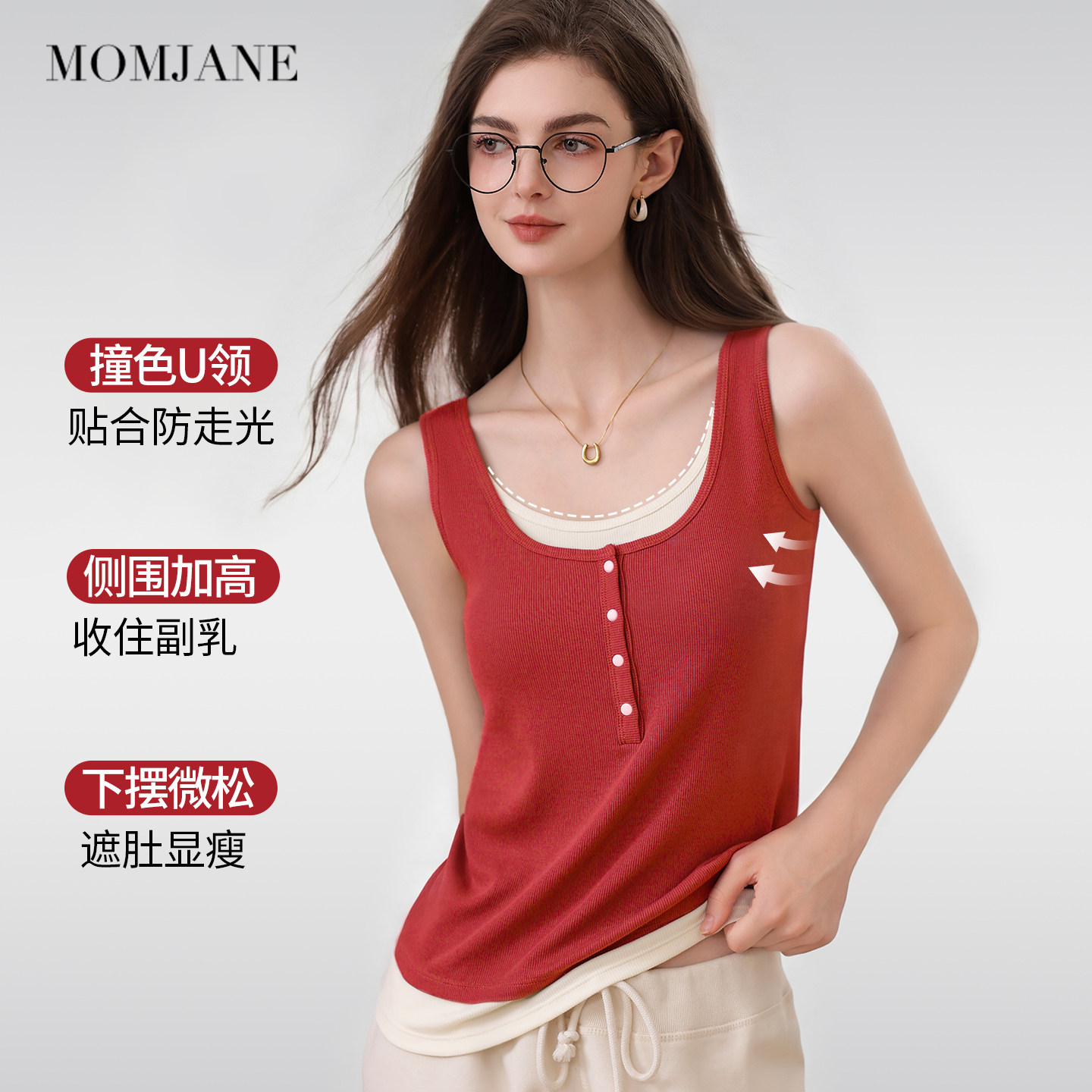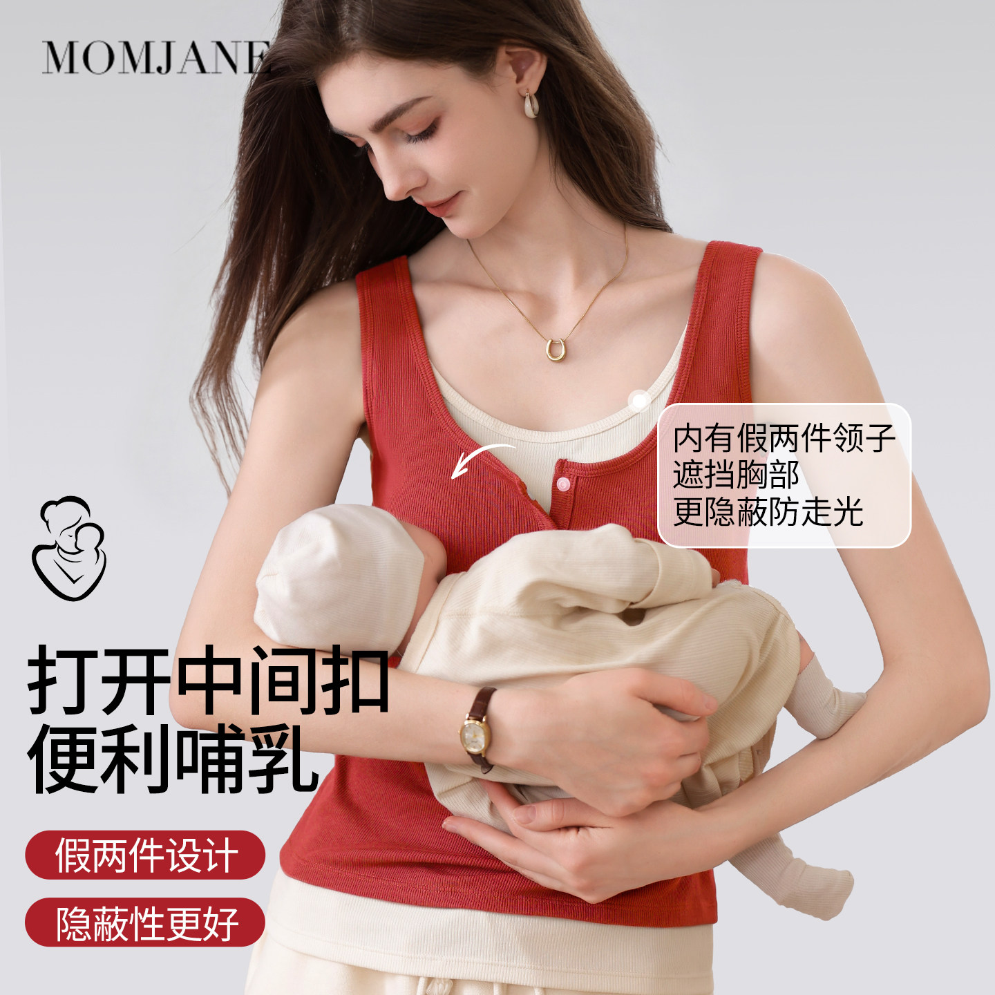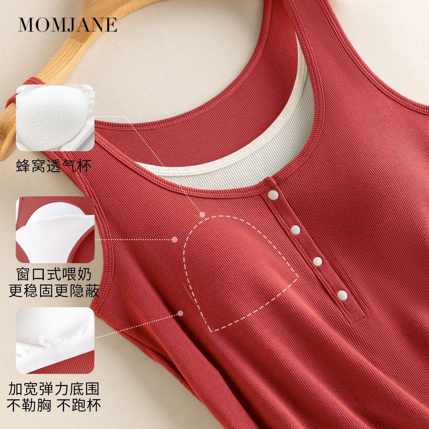 MomJane哺乳背心吊带红色假两件