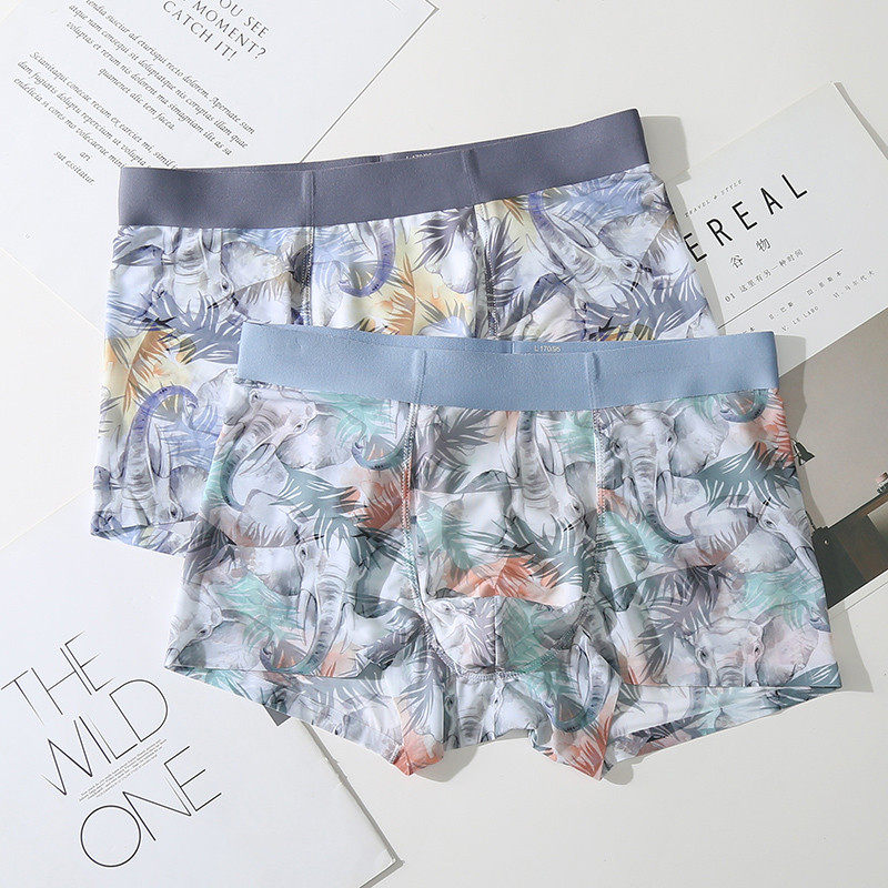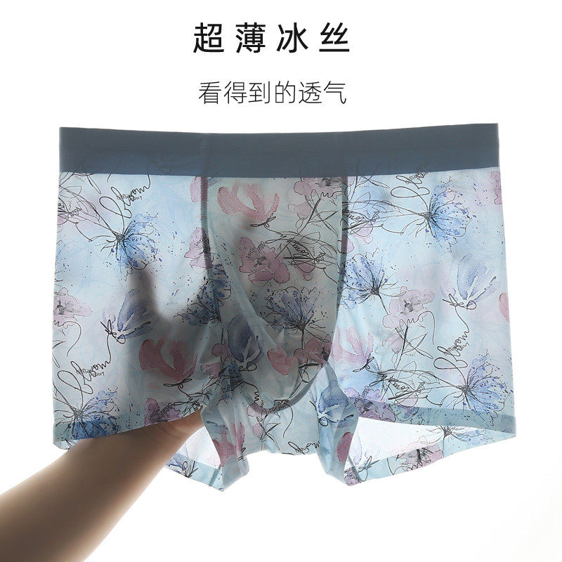 超薄夏季 透明卡通 短四角底裤潮流男士内裤冰丝平角无痕裤衩个性