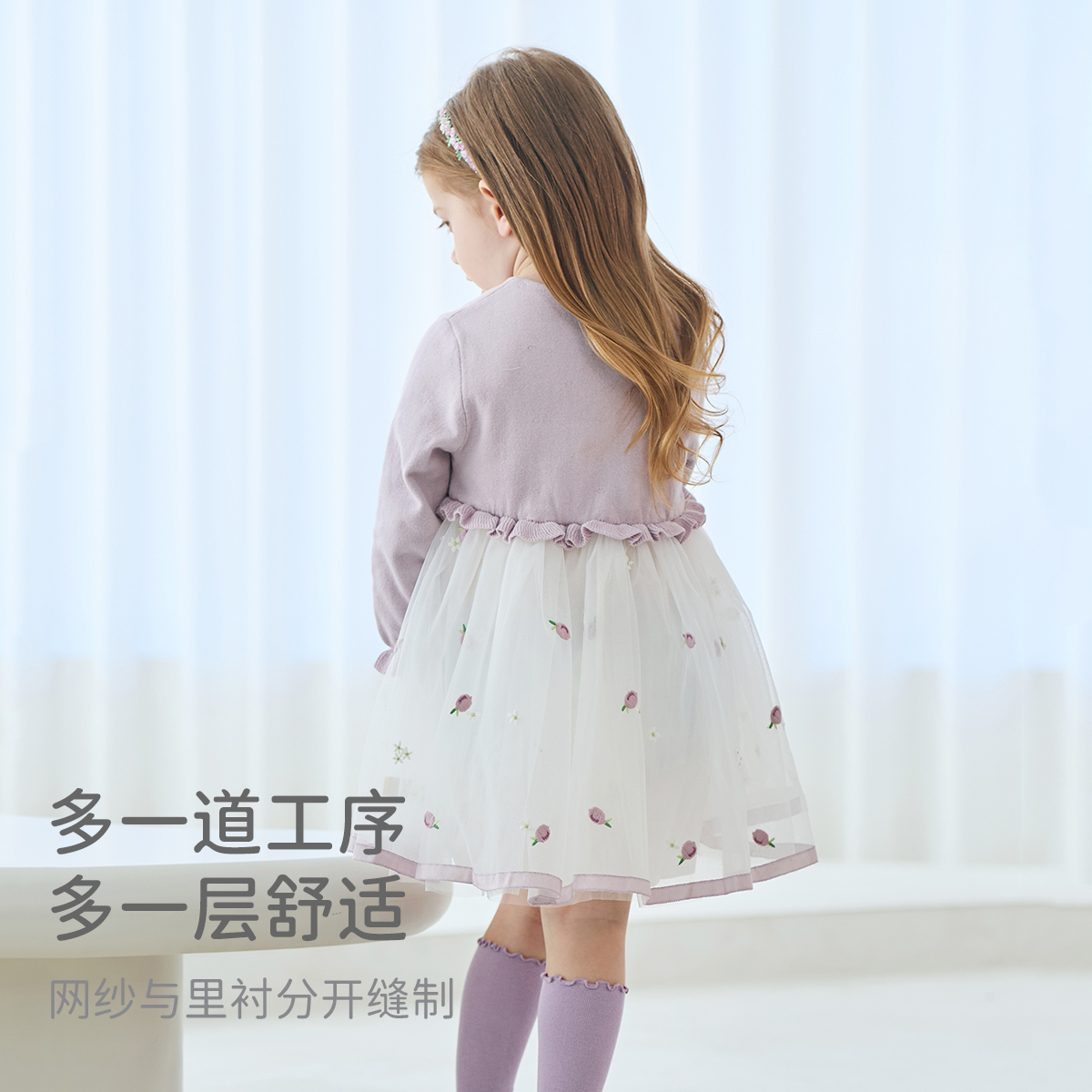 戴维贝拉女童连衣裙儿童洋气裙子2025新款秋装宝宝网纱公主裙童装
