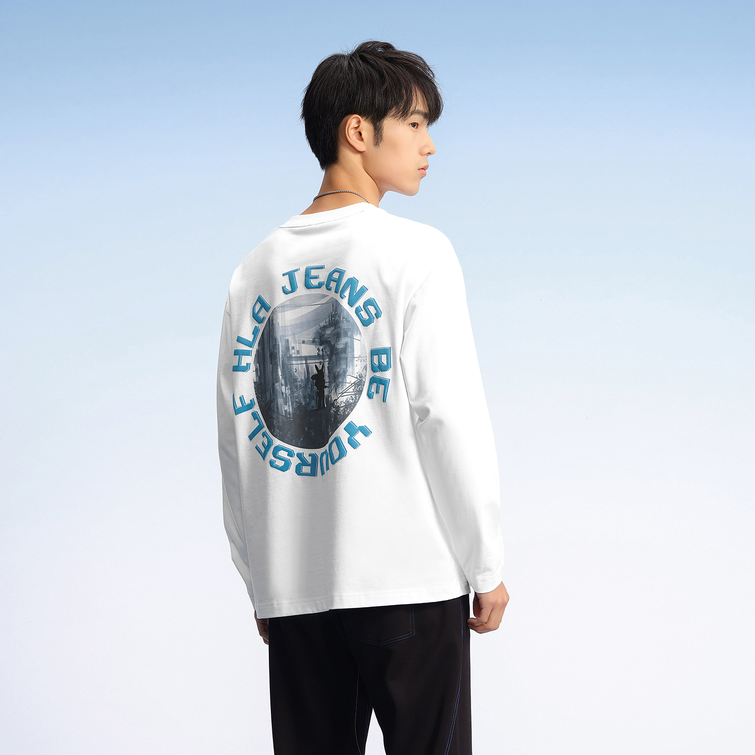 海澜之家旗下黑鲸后背大幅印花长袖T恤男春季圆领套头衫商场同款
