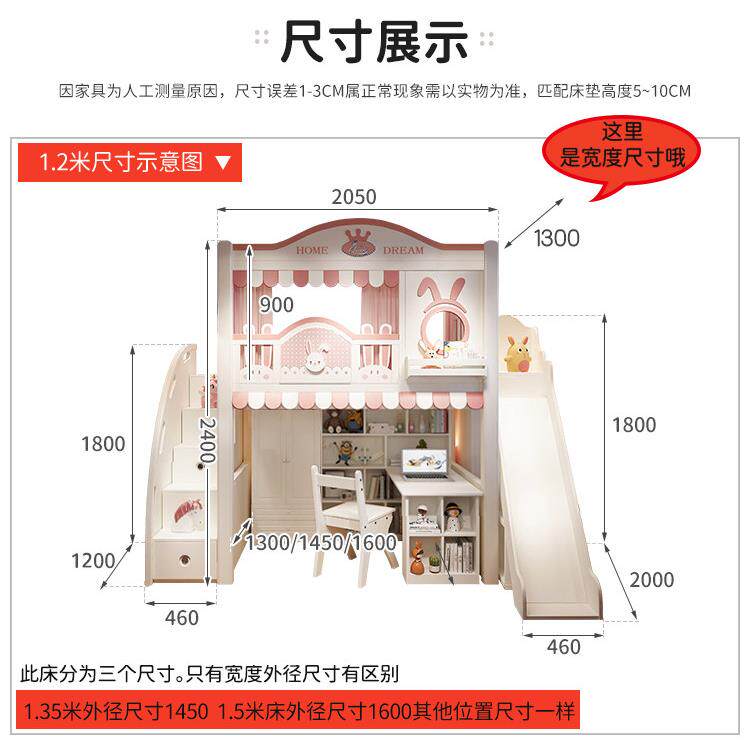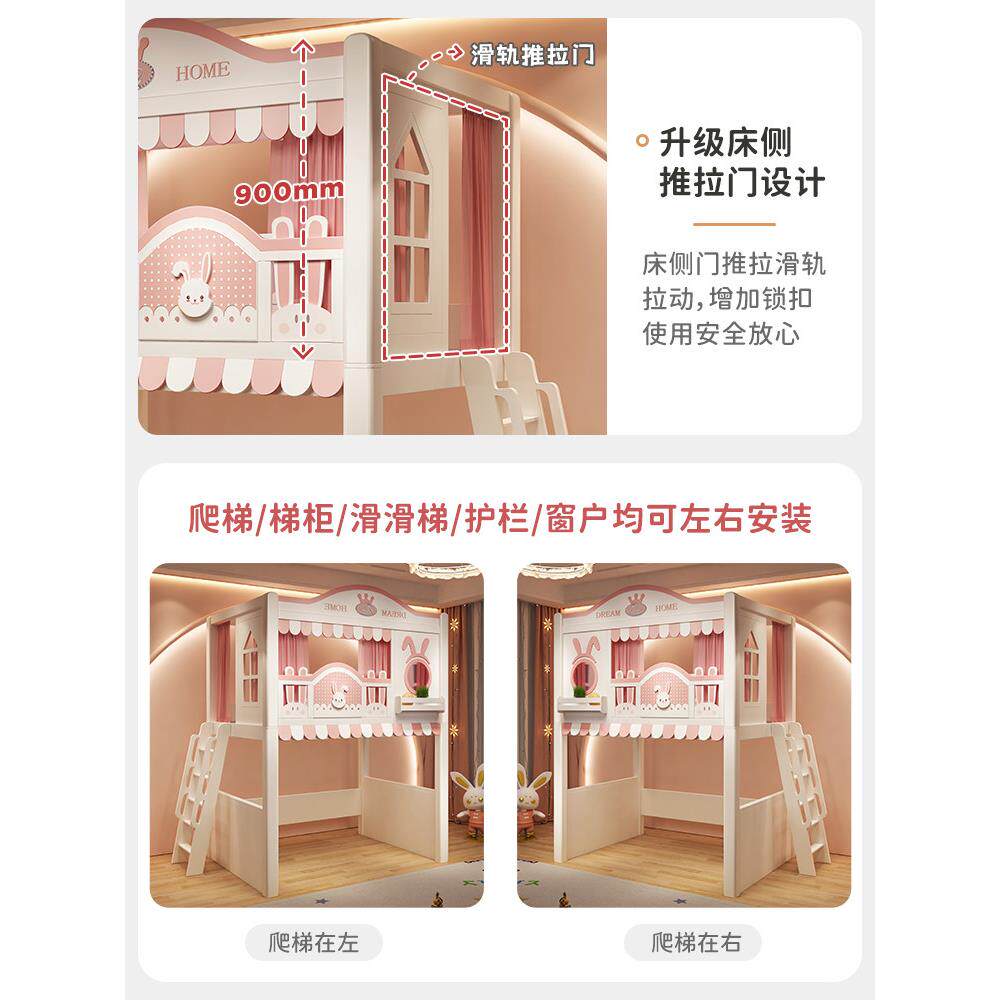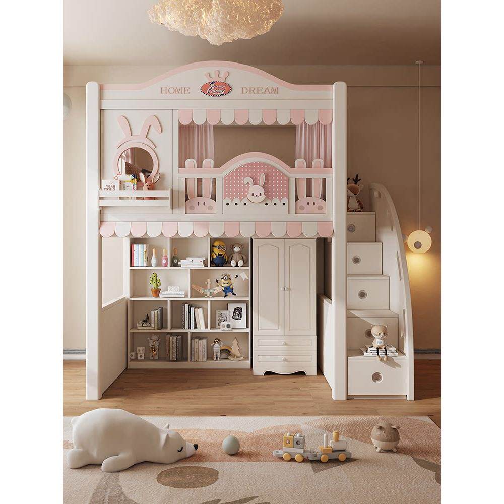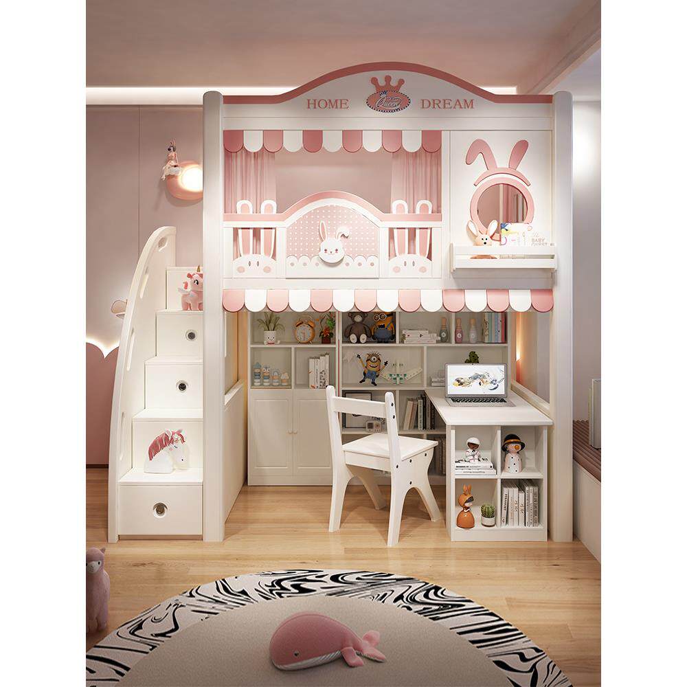 卡通儿童床上下铺上床下桌组合床衣柜书柜一体兔子双层床同宽高箱