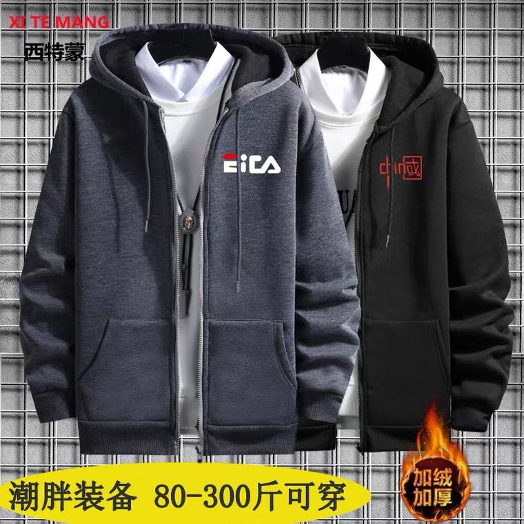 卫衣男秋冬加肥加大码拉链加厚300斤大号开衫男加绒外套M-8XL上衣