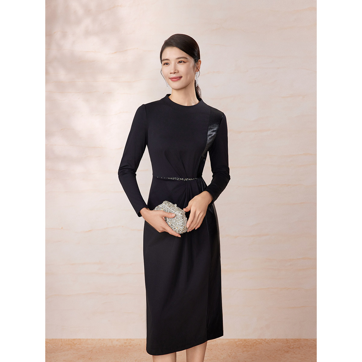 【复古针织小黑裙】BBLLUUEE粉蓝衣橱2025春秋新款光感拼接连衣裙