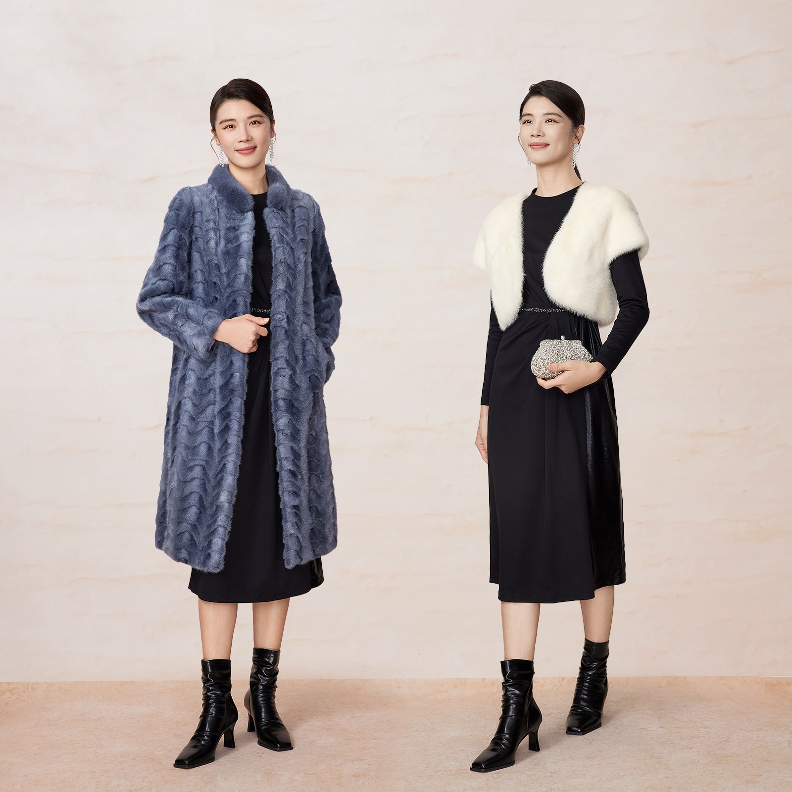 光感拼接复古粉蓝衣橱小黑裙