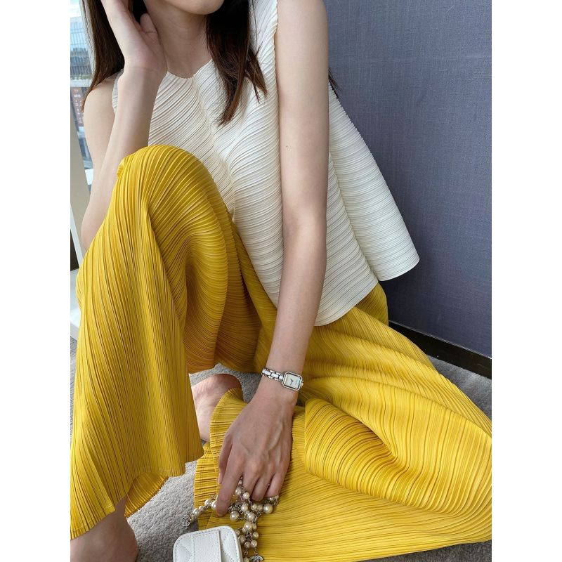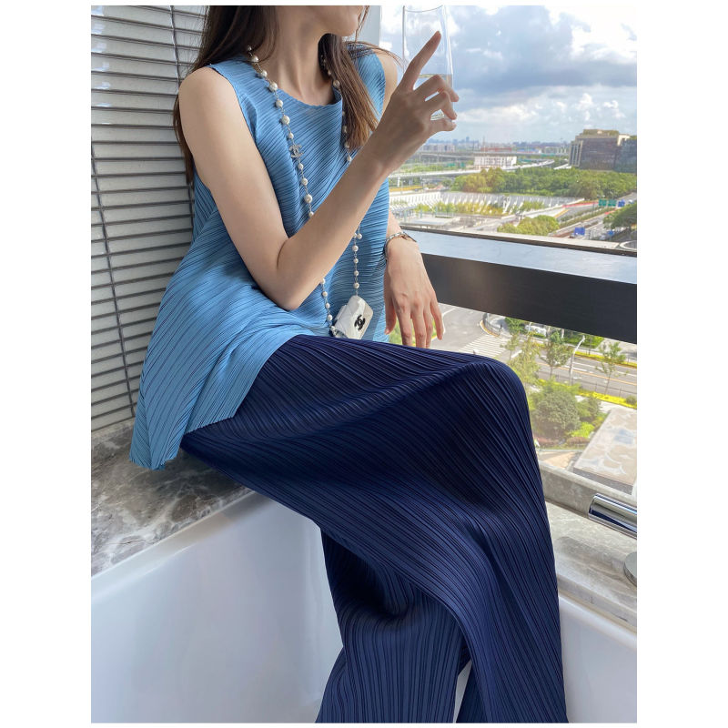 2025宅褶皱无袖背心上衣宽松阔腿裤套装女夏高腰休闲时尚两件套