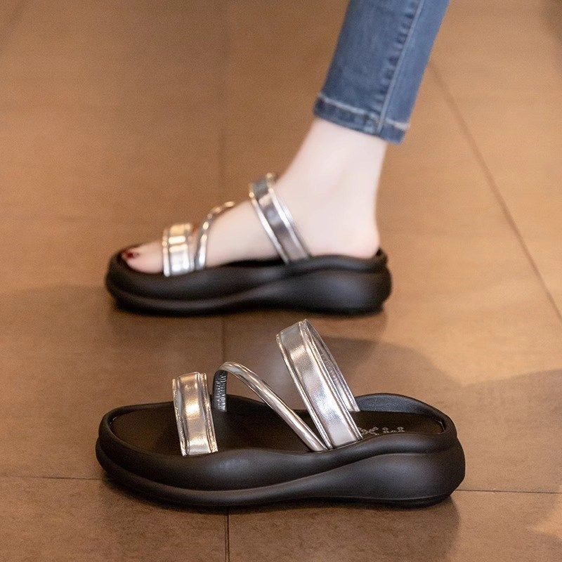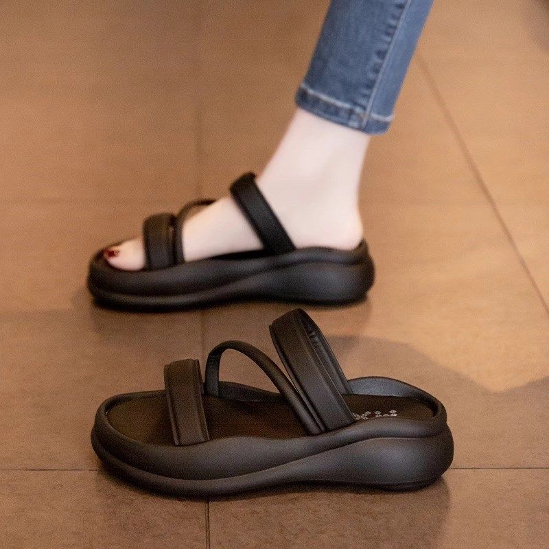 凉拖鞋女夏季外穿2025新款厚底增高沙滩凉鞋高级感软底孕妇一字拖