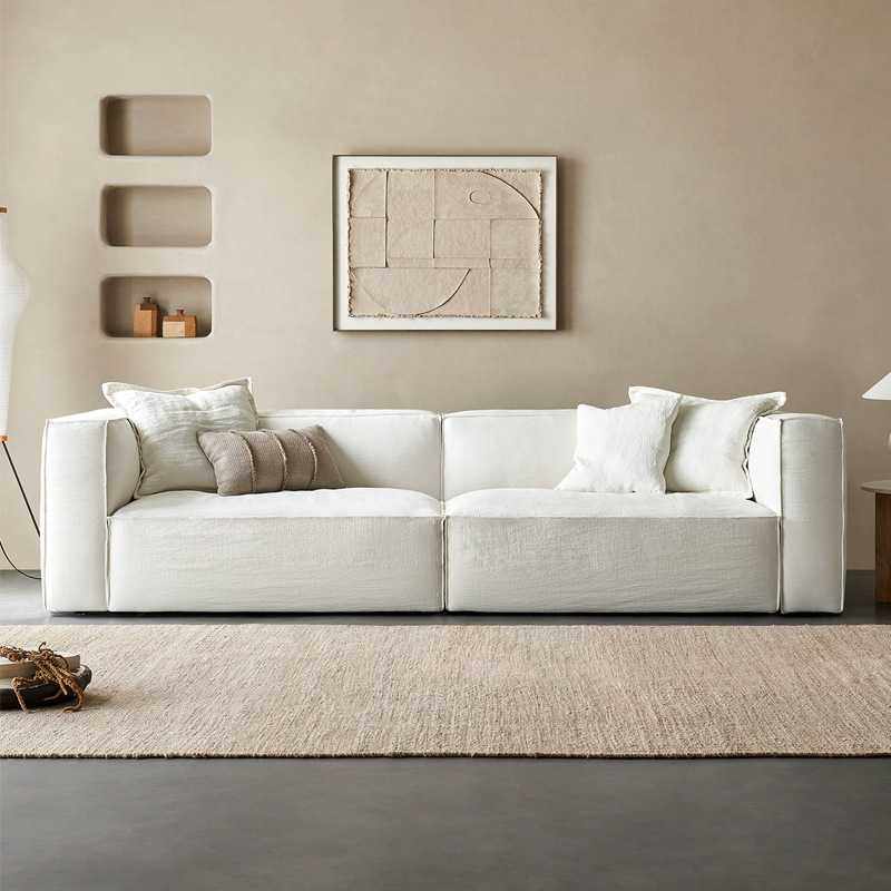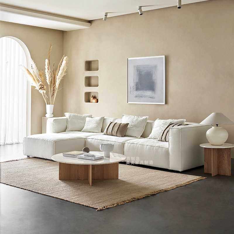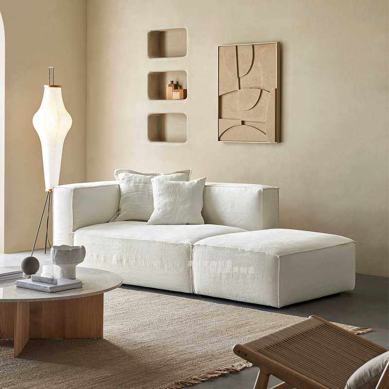 北欧亚麻布艺全拆洗沙发侘寂风转角日式奶油风豆腐块客厅现代组合