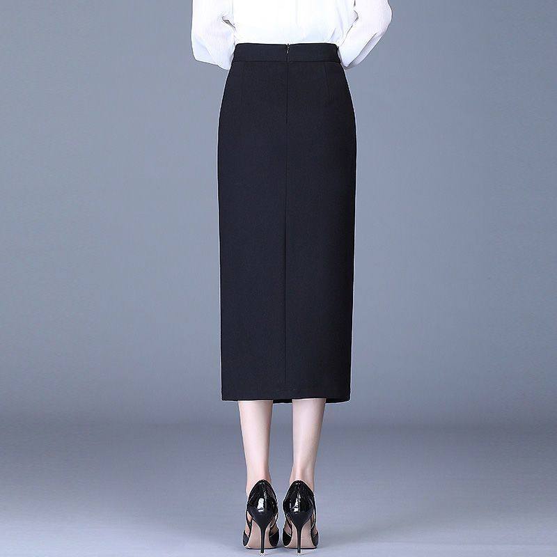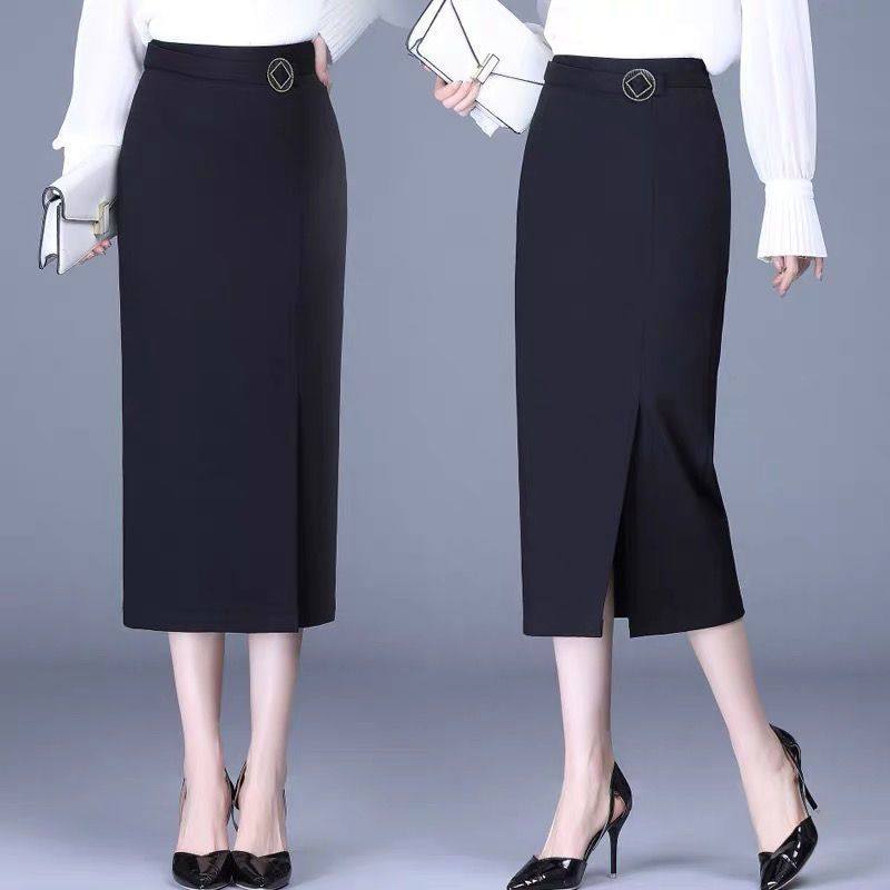 包臀半身裙女秋冬新款高腰开叉一步裙中长款显瘦职业包裙大码长裙