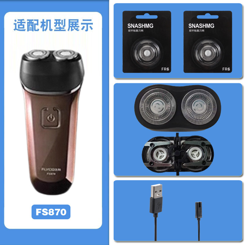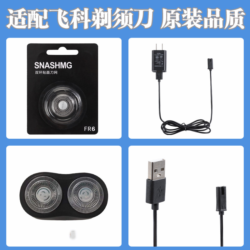 适配飞科剃须刀FS870充电线充电器刀头刀片FR8刀网头盖配件电动