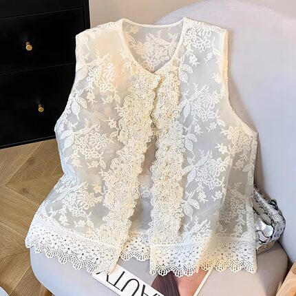 国风新中式蕾丝刺绣马甲背心女2025新款夏季外搭上衣薄款马夹外套