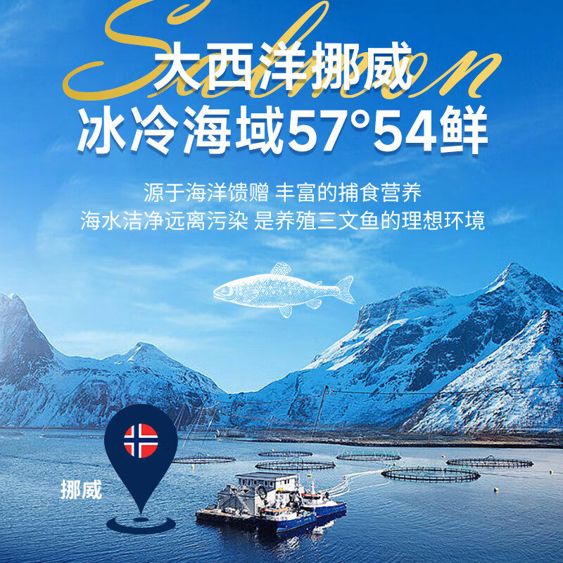 挪威进口三文鱼中段现切鱼腩鱼肉冰鲜刺身生鱼片日料同款顺丰包邮