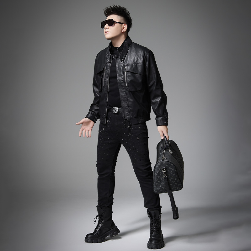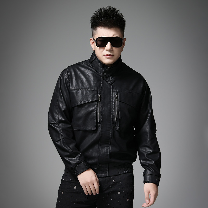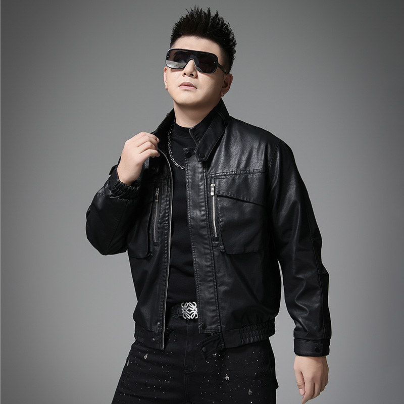 欧洲站春秋季新款翻领皮衣男士休闲痞帅机车服潮牌男款皮夹克外套