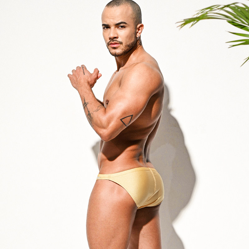 desmiit 男士性感泳裤三角低腰海滩晒黑度假游泳裤纯色沙滩比基尼