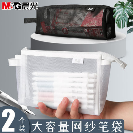 晨光透明网纱笔袋大容量简约学生