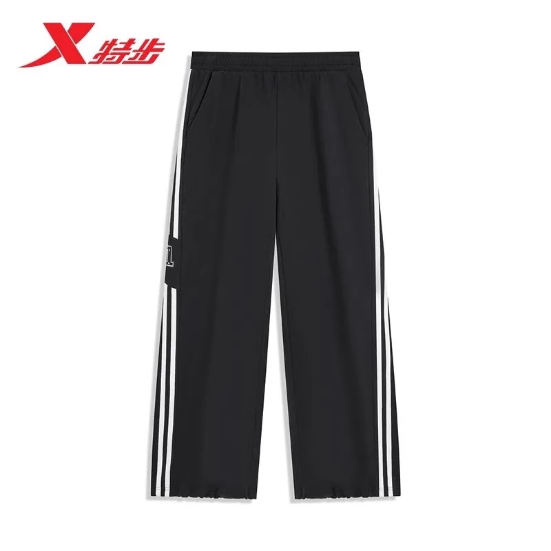 特步女裤针织长裤2025秋季新款女士运动直筒阔腿裤975328630190