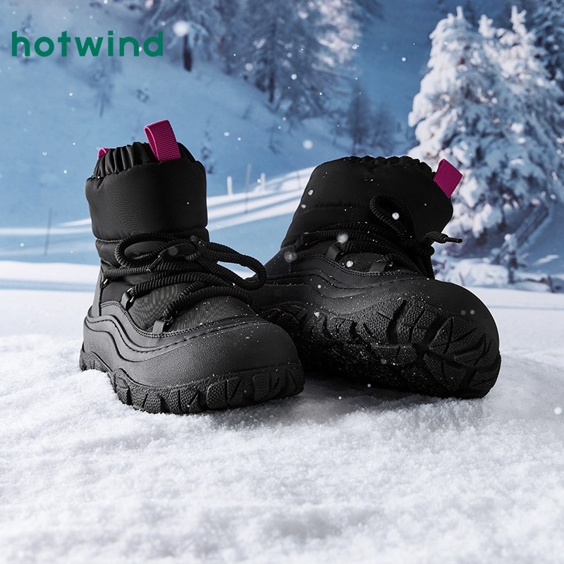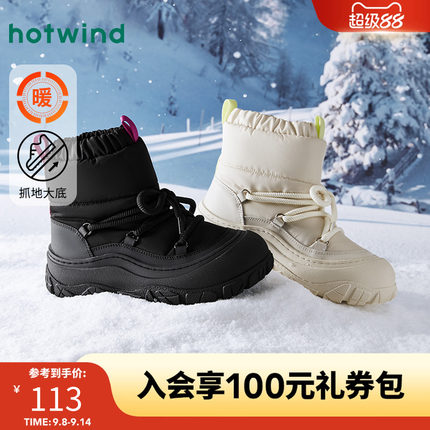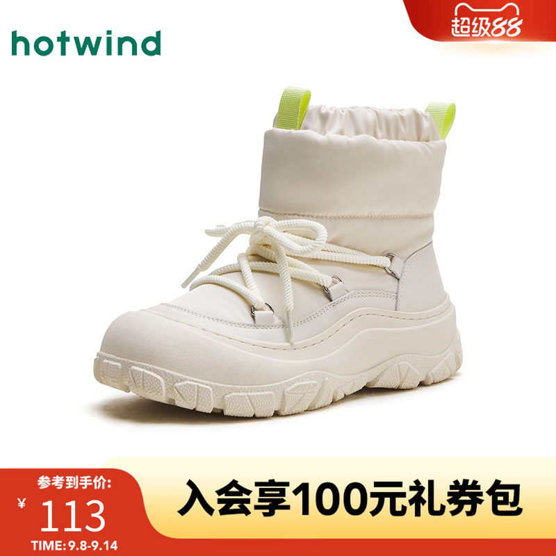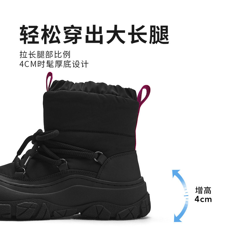 热风冬季新款女士时尚加绒保暖休闲靴短筒厚底拼色女靴子潮棉鞋