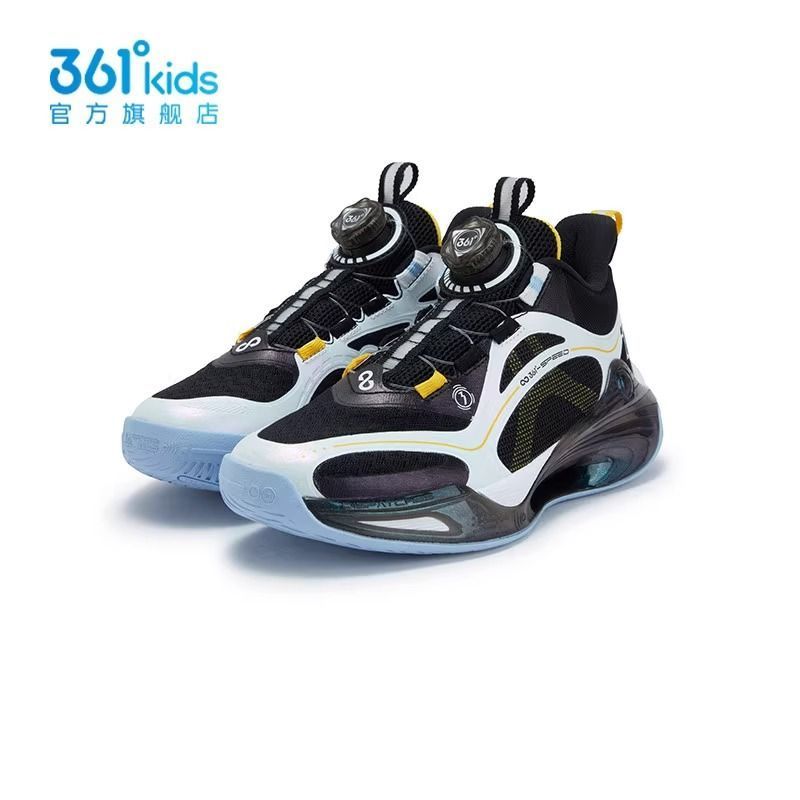 361°男童网面篮球鞋旋钮扣新品2025秋春儿童镂空运动鞋