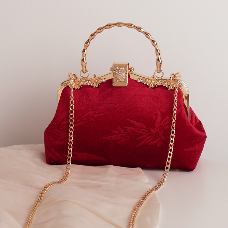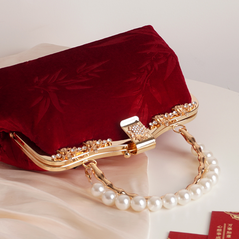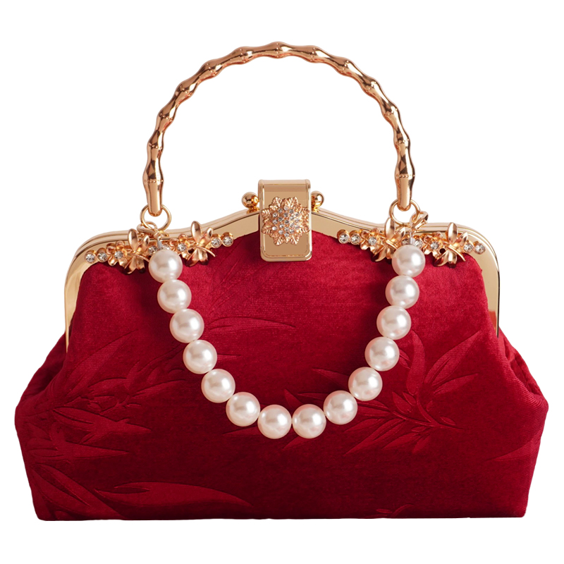 中式红色旗袍手提包女晚宴礼服婚礼喜婆婆妈妈婚包结婚小包包复古