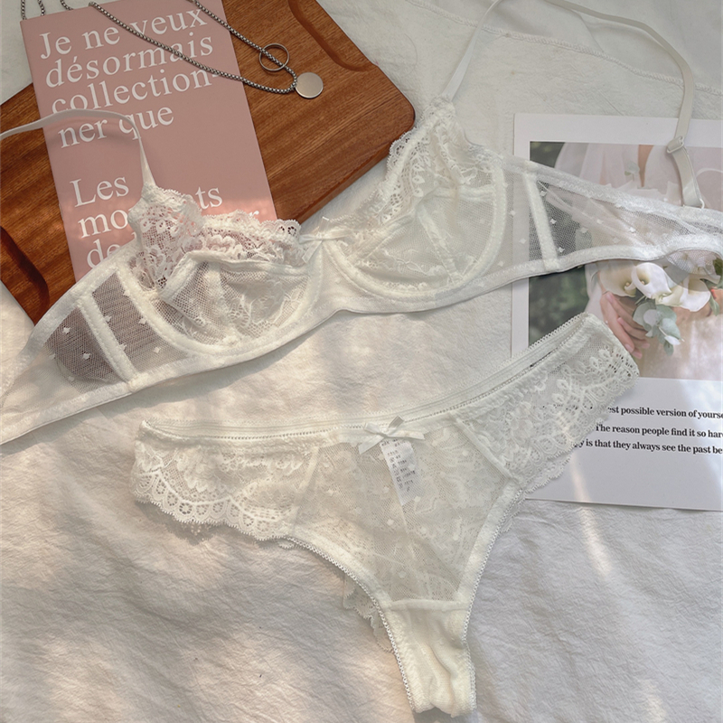 法式性感超薄蕾丝内衣女大胸显小聚拢有钢圈上托防下垂文胸套装透