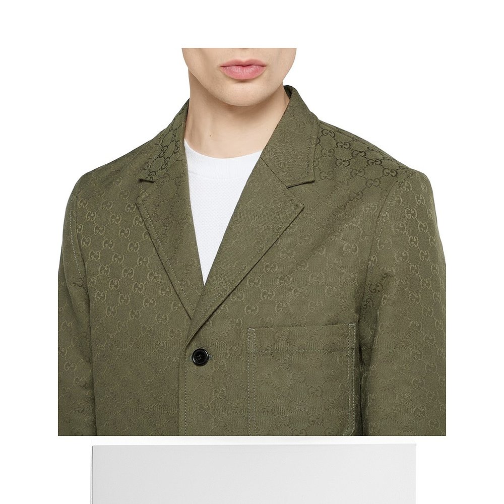 自营欧洲直邮Gucci/古驰 男士森林绿棉双G单排扣翻领夹克外套男装