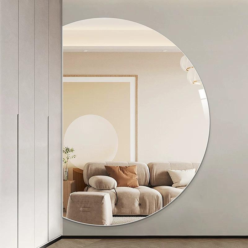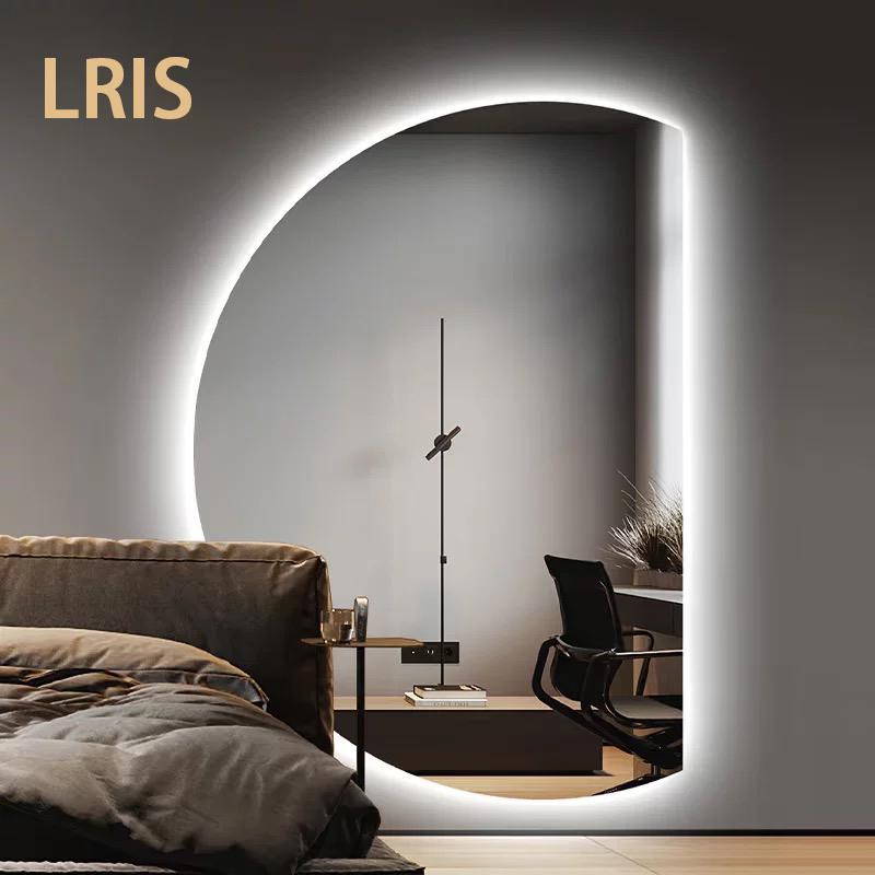半圆形ins风全身镜家用穿衣镜壁挂粘贴梳妆镜LED发光镜异形大镜子