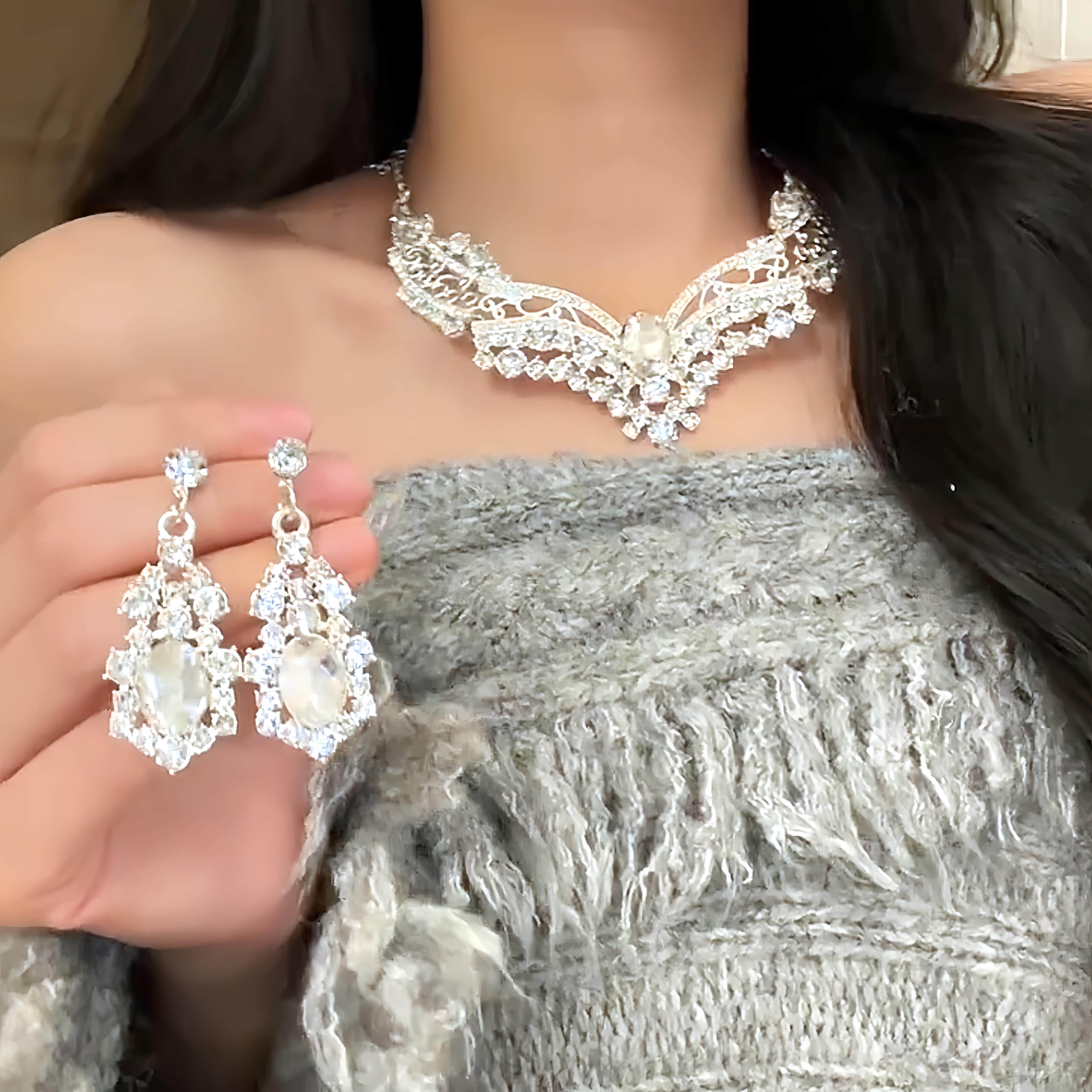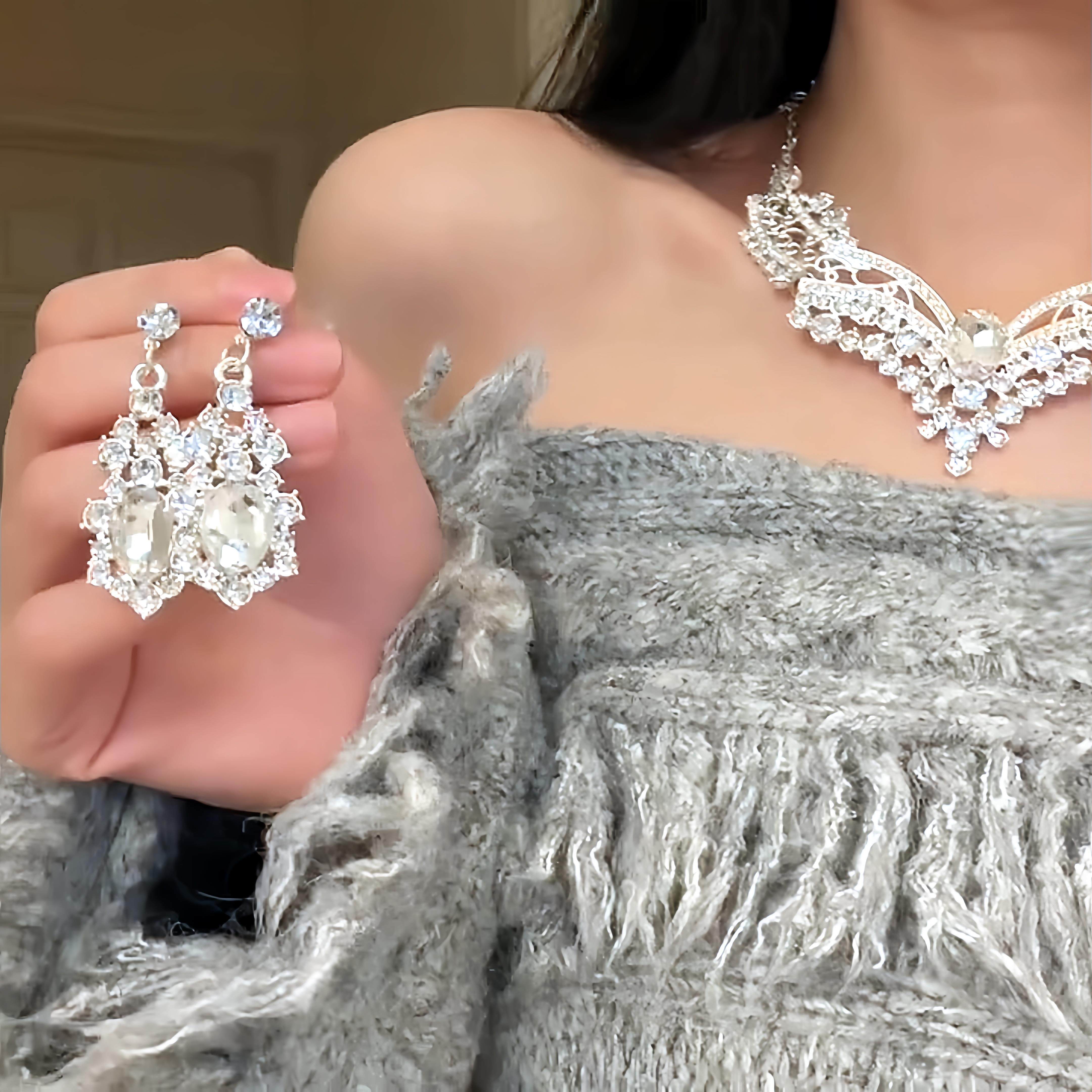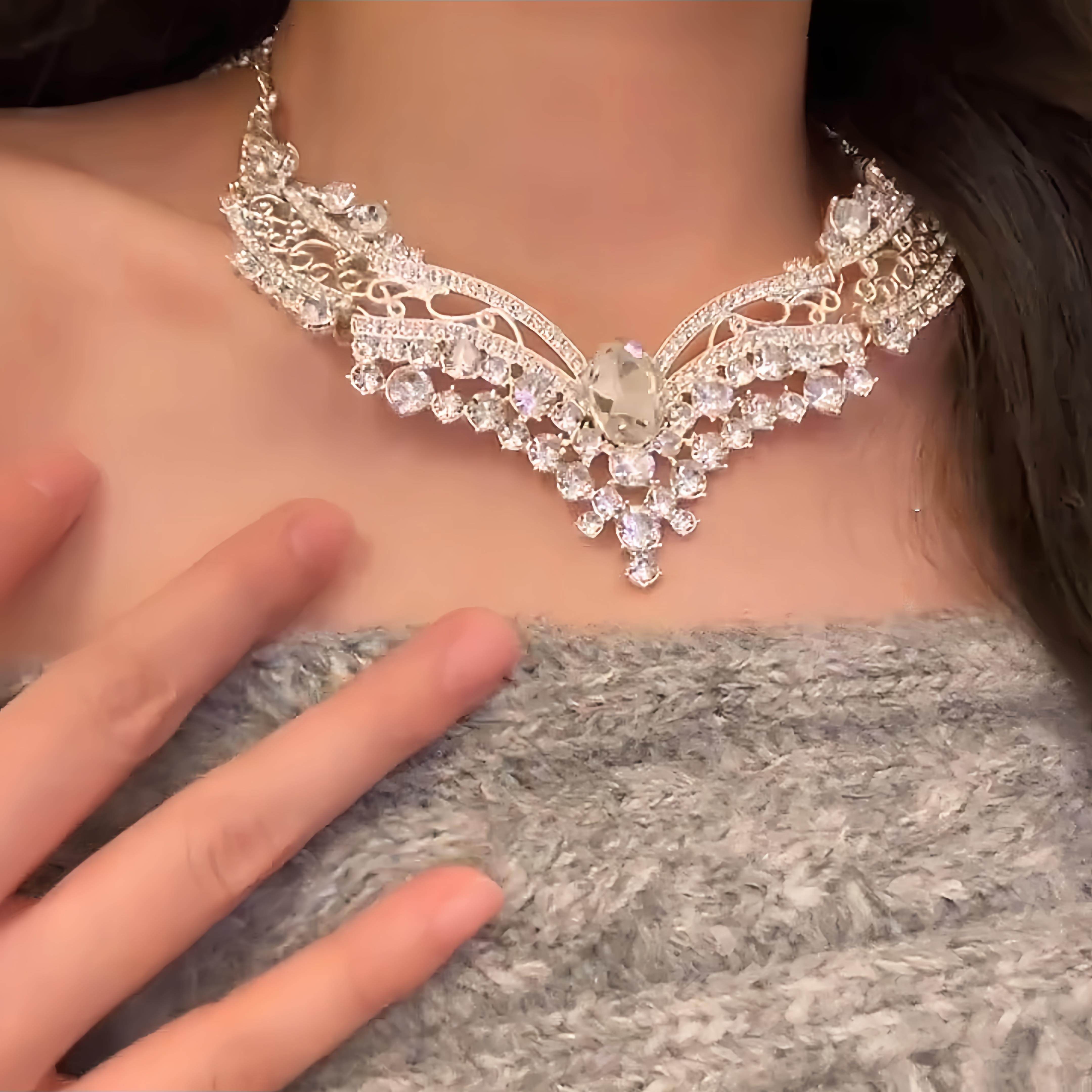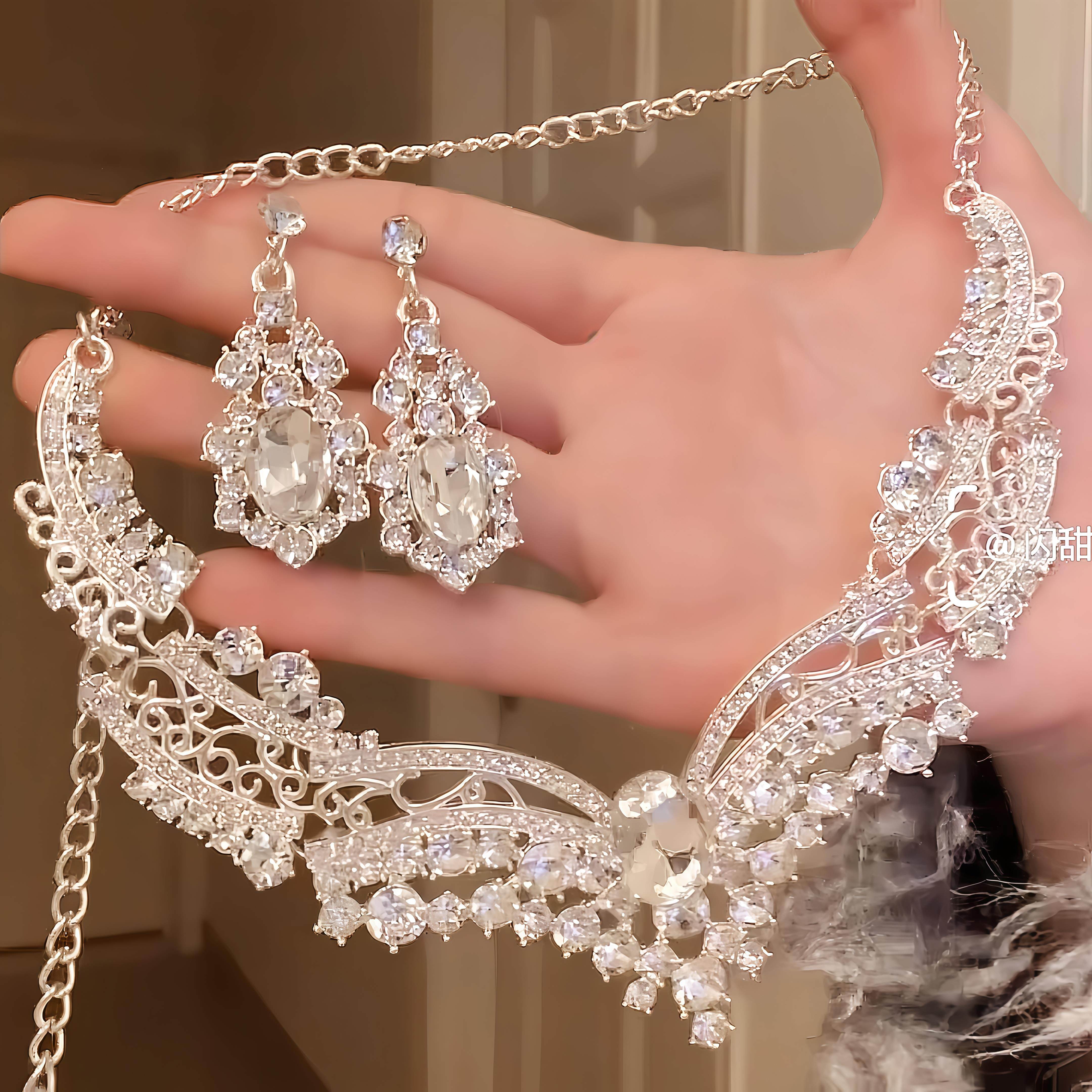 生日出片道具锁骨链闪亮水晶镶钻项链晚礼服耳环套组新娘婚纱配饰