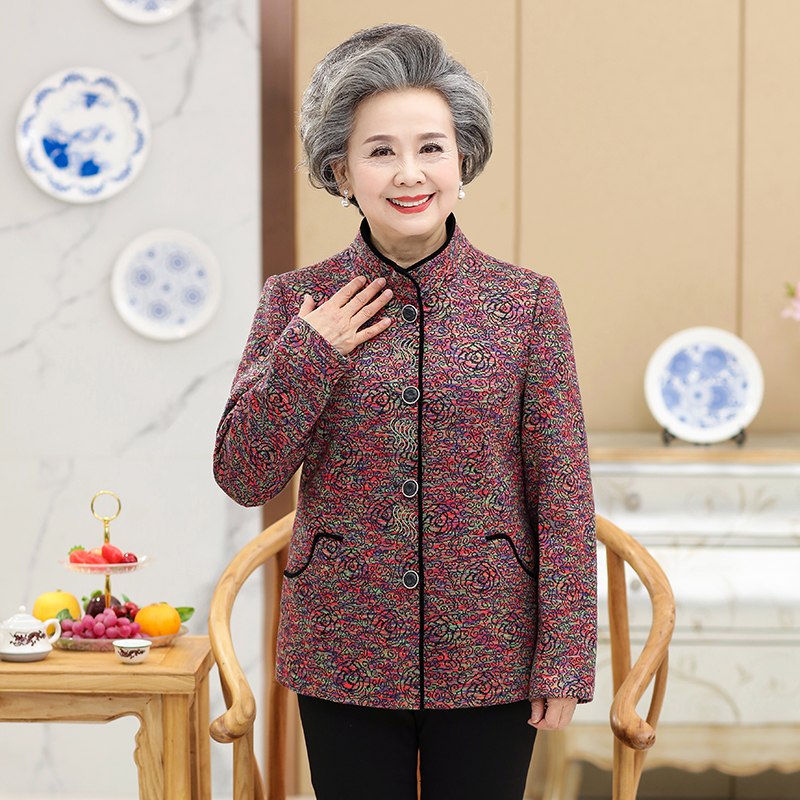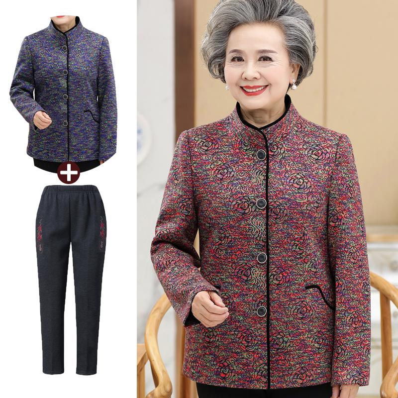 老年人秋装外套女妈妈装60岁70奶奶装大码衣服老太太上衣立领唐装