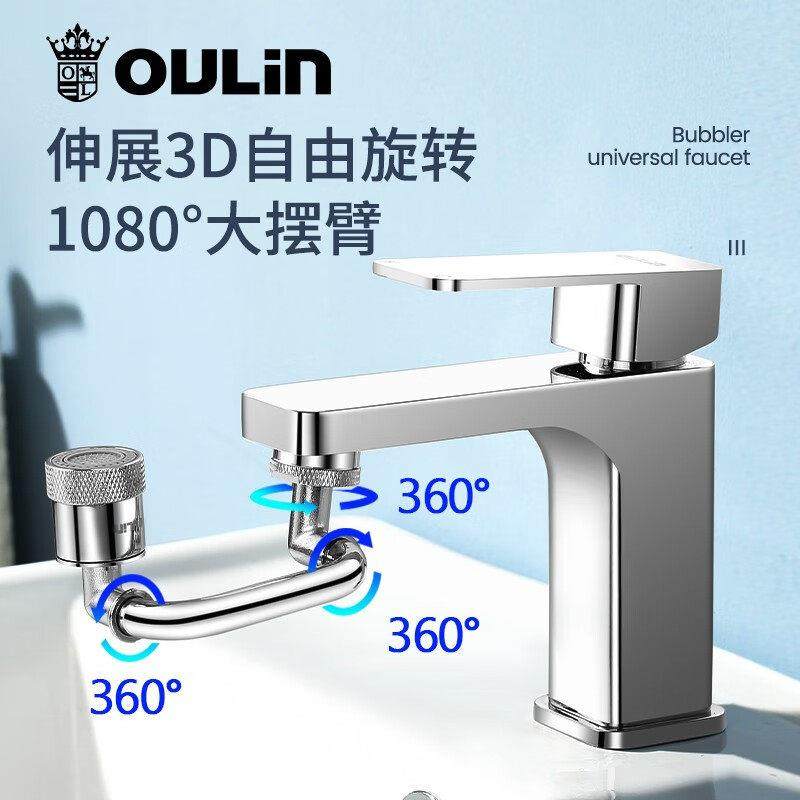 欧琳机械臂万向水龙头延伸器可旋转水嘴洗脸盆起泡器接头防溅套嘴