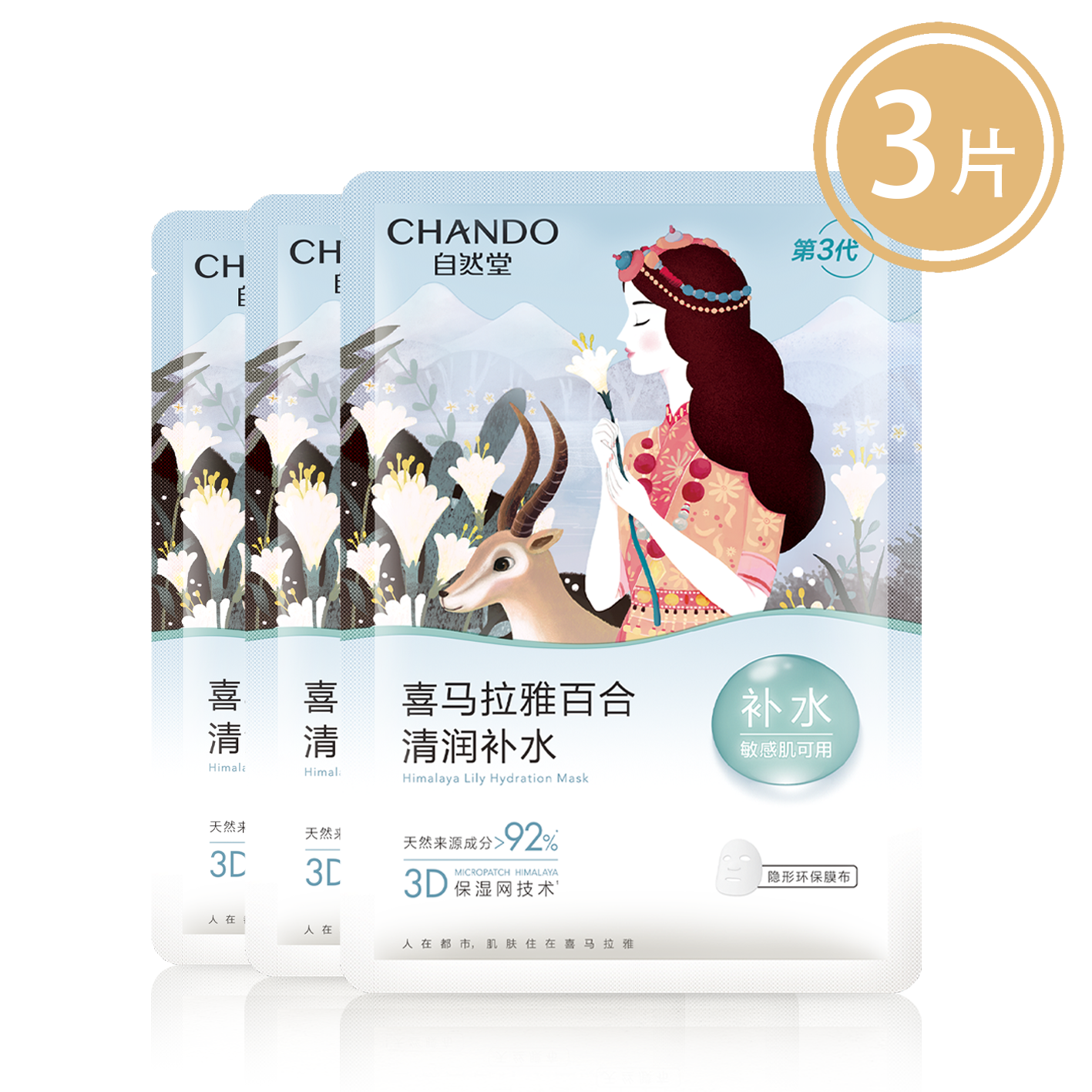 自然堂雪域百合补水面膜 26mL*3片【88VIP】