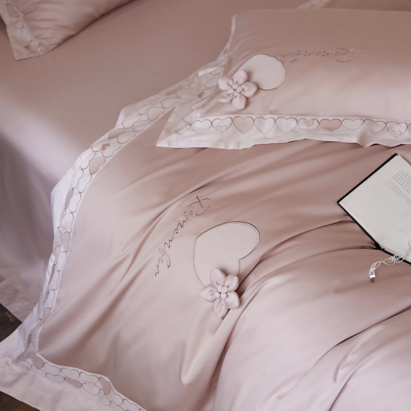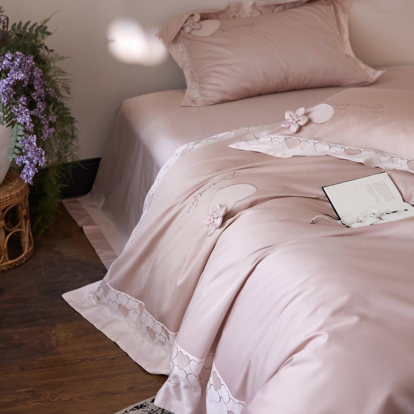 红花车高级感长绒棉绣花四件套少女立体花朵被套床单全棉床上用品
