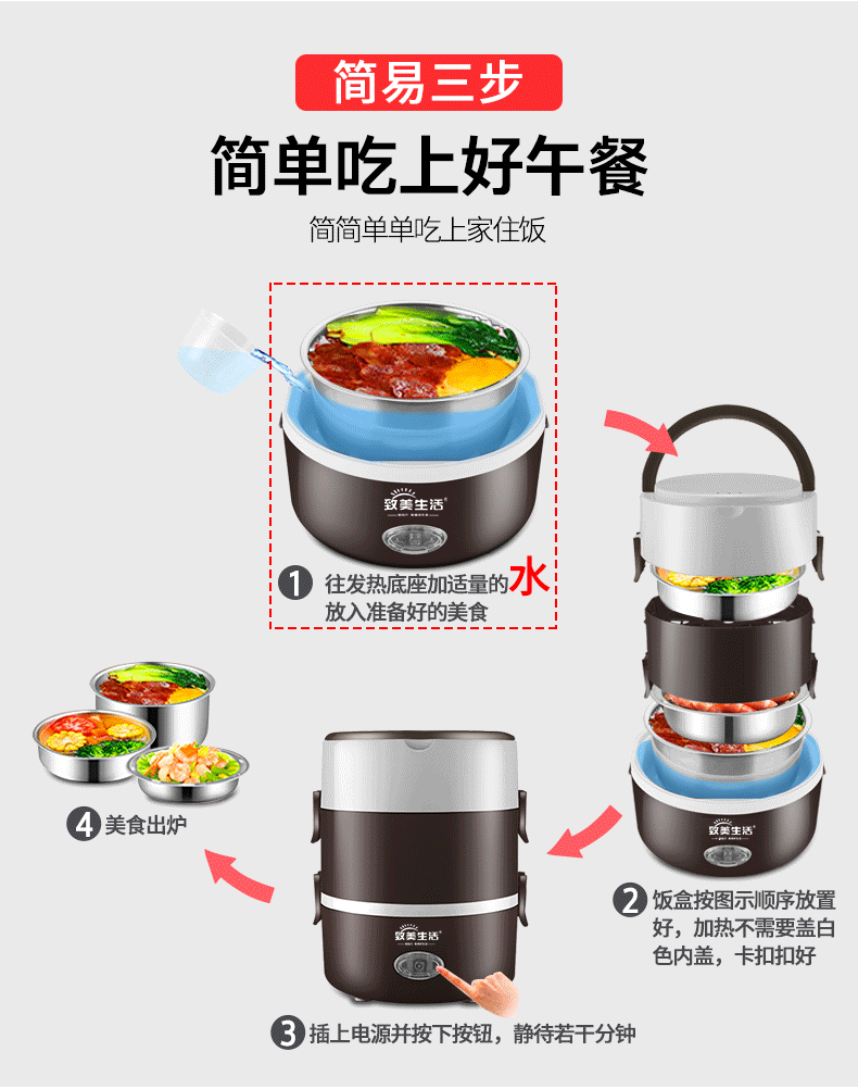 加热饭盒可插电上班族电热饭菜神器自热便当盒蒸饭带饭保温学生宿
