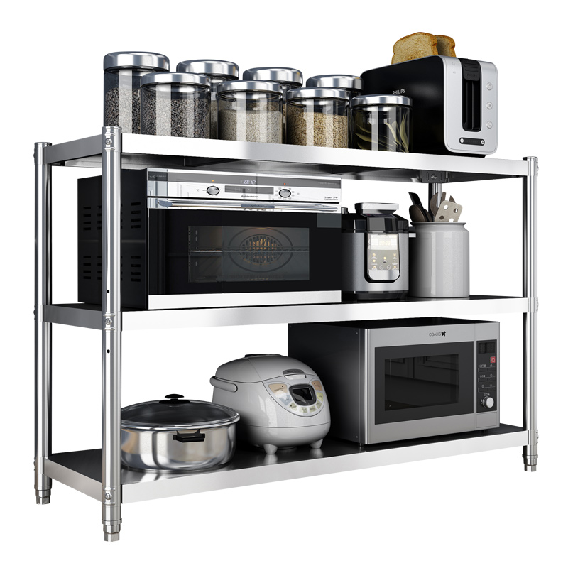 三层厨房置物架不锈钢货架落地多层橱柜多功能灶台微波炉收纳架子
