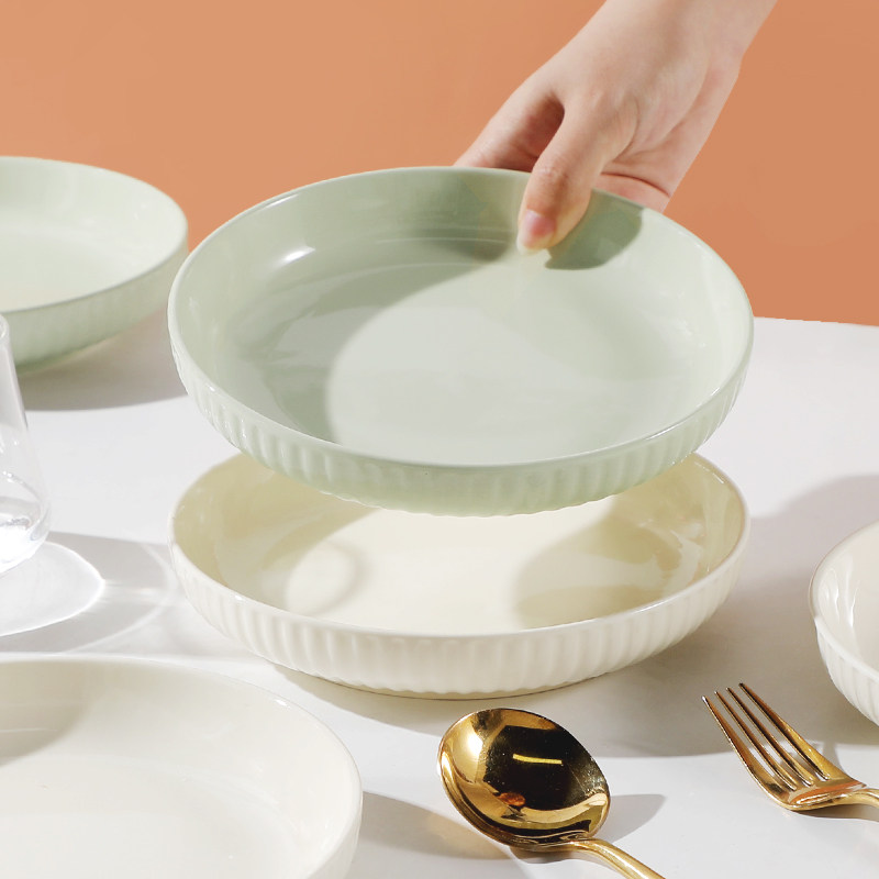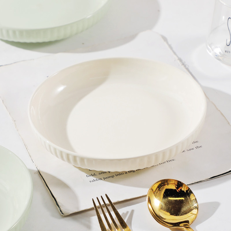 盘子菜盘家用法式奶油风陶瓷餐具4/6只装耐高温碟子套装水果盘子