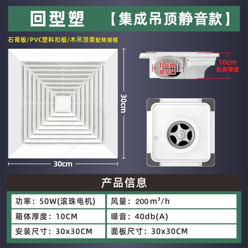 300x300 厨房卫生间排气扇集成吊顶强劲吸力静音浴室换气扇铝扣板