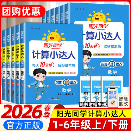 2026春阳光同学计算小达人默写一二三年级四五六年级下册上册人教苏教北师大版小学数学思维训练同步练习册口算题卡应用题天天练
