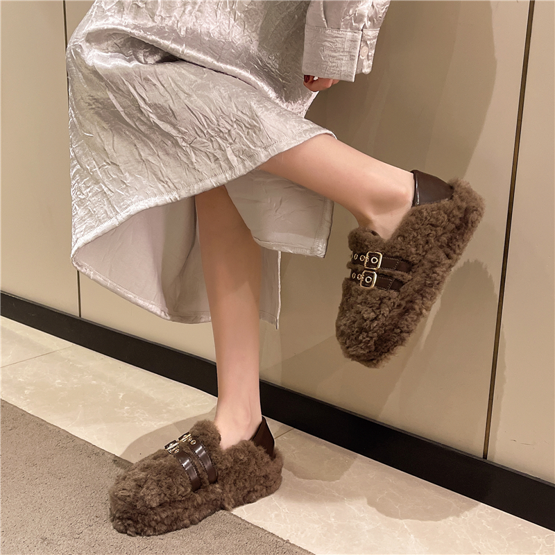 5CM增高厚底小个子毛毛鞋女冬季外穿2025新款豆豆鞋女加绒棉拖鞋
