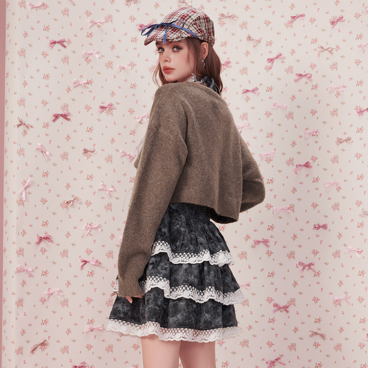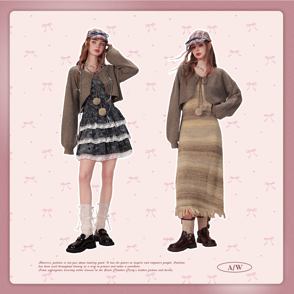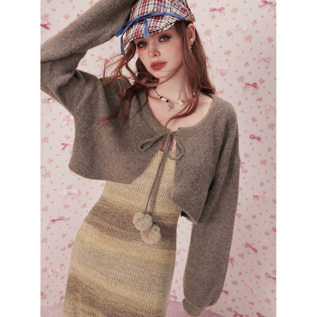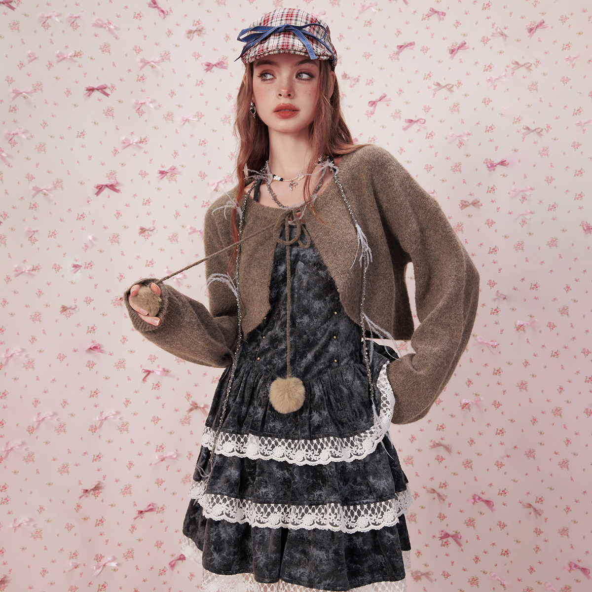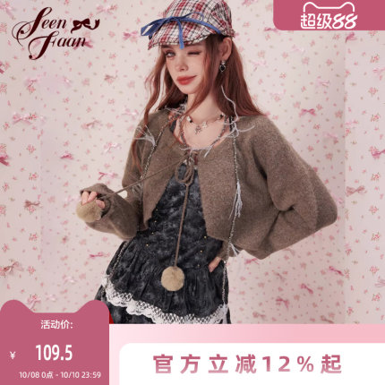 SEENFAAN盛放秋季新款毛绒针织披肩短款设计感小众开衫复古肌理感