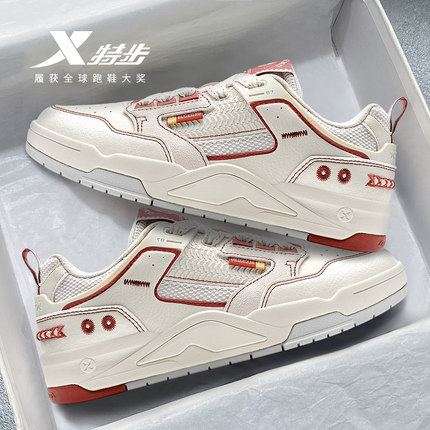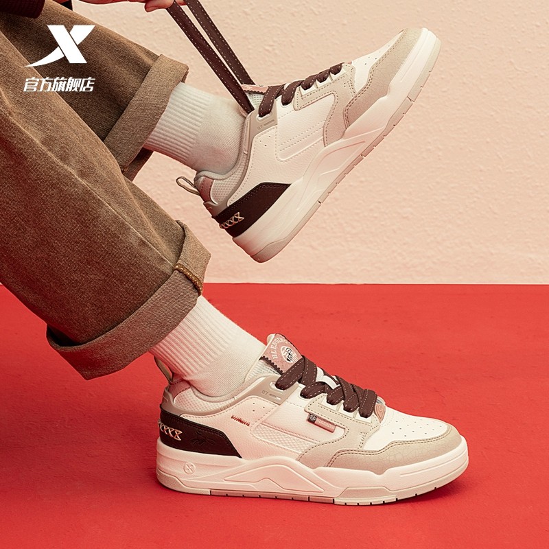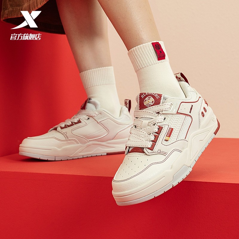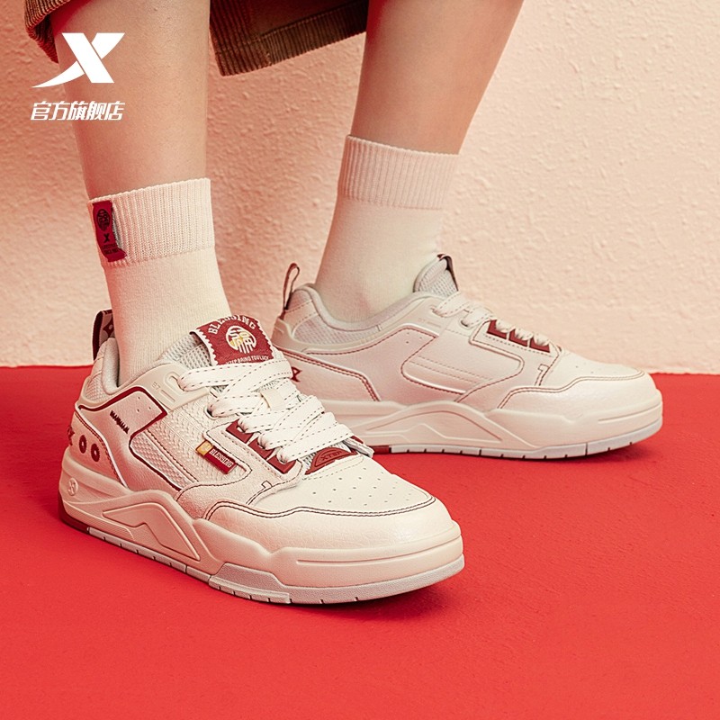 特步新晖板鞋女鞋官方旗舰新款皮面红色新年百搭休闲鞋运动鞋正品