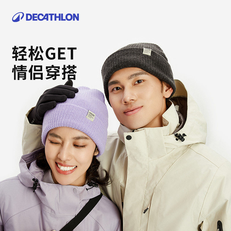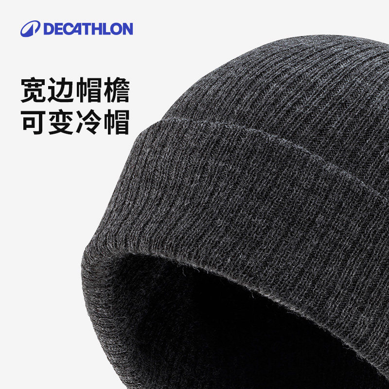 迪卡侬帽子男款秋冬毛线帽针织帽登山帽徒步骑车保暖时尚冷帽OVWH