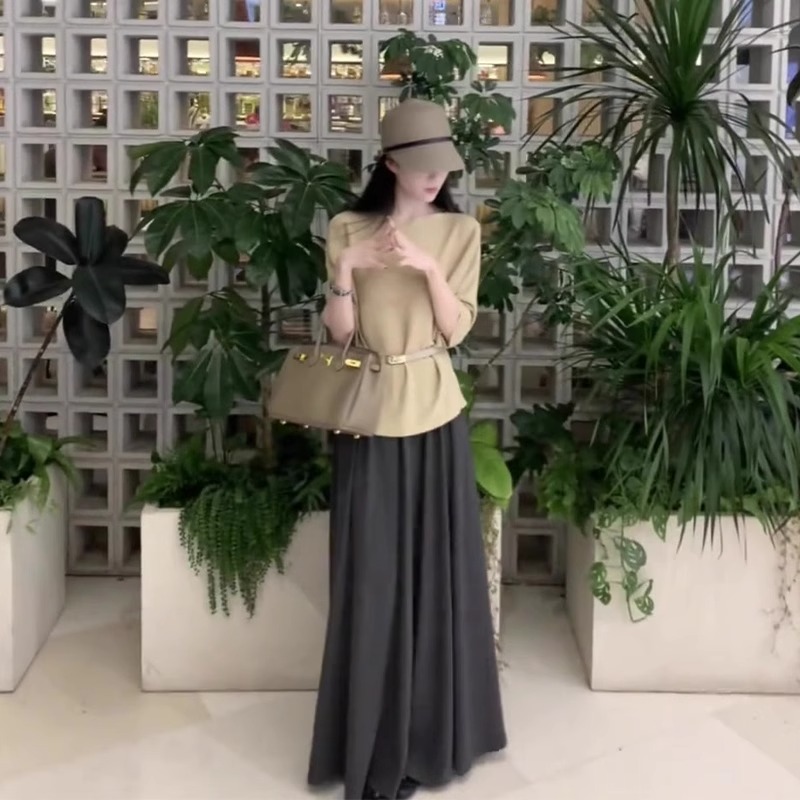 法式圆领冰丝短袖针织衫女夏季超好看独特漂亮掐腰修身老钱风上衣