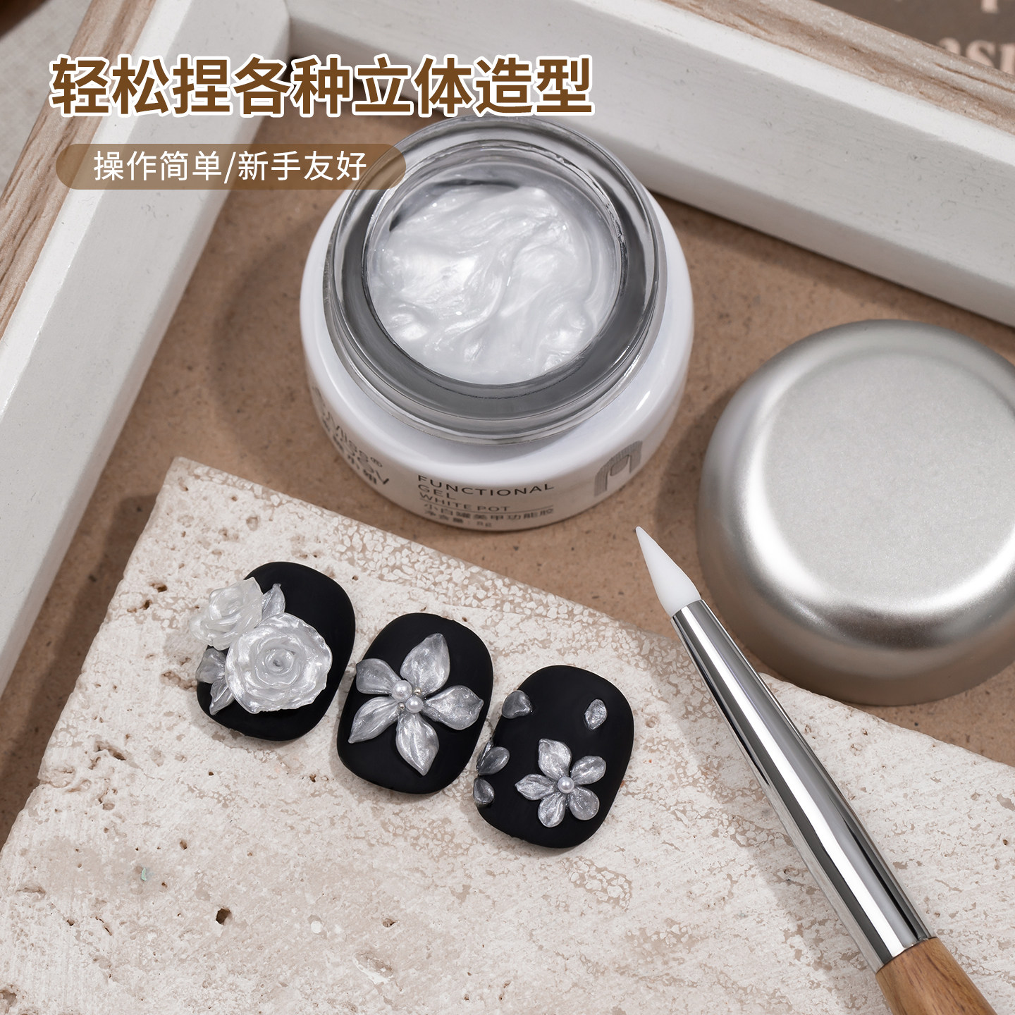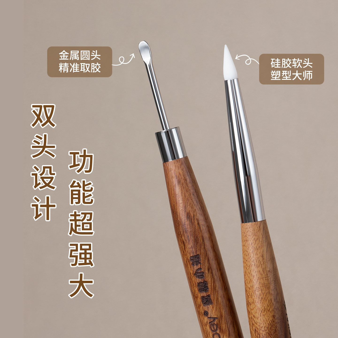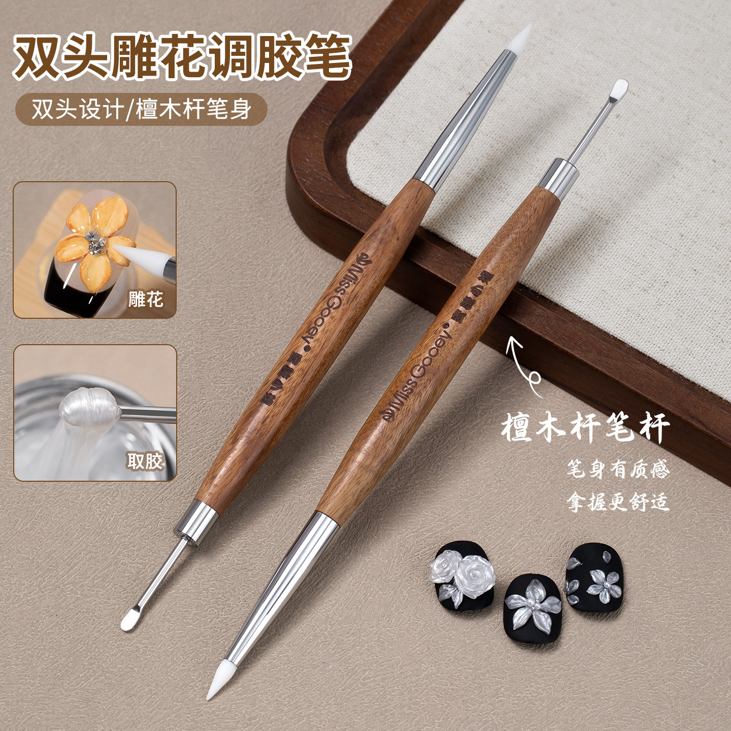 双头雕花调胶笔檀木杆穿戴甲手绘硅胶笔压花彩绘双用美甲专用工具