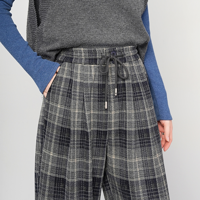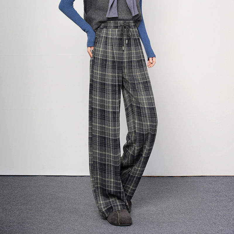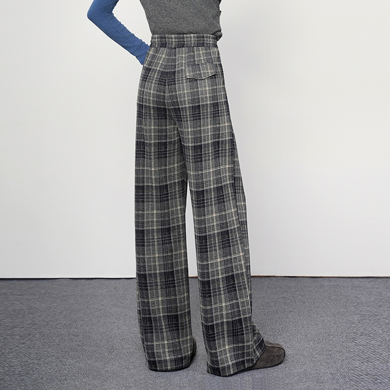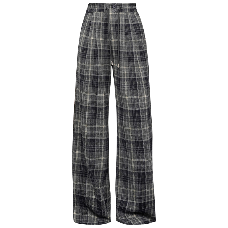 2025新款春秋款格子拼接阔腿裤女时尚高腰直筒休闲裤潮妈妈装裤子