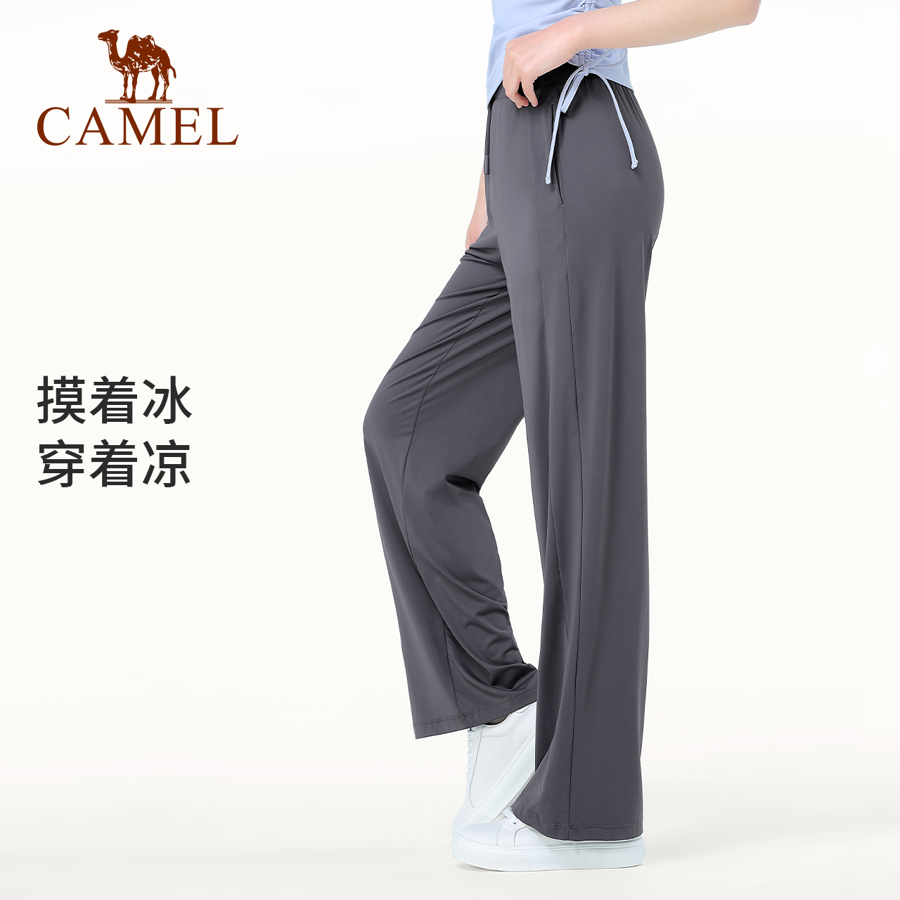 骆驼女装黑色冰丝阔腿裤女春夏新款防晒速干裤透气休闲裤长裤子