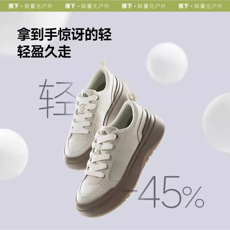 蕉下小白鞋男女同款新板鞋厚底增高低帮百搭白色百搭一脚蹬帆布鞋