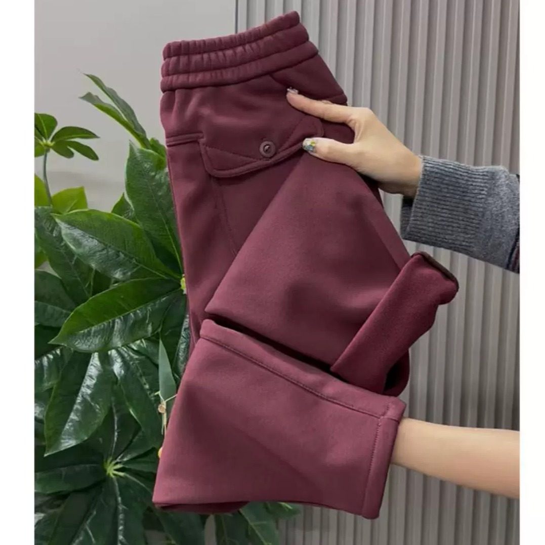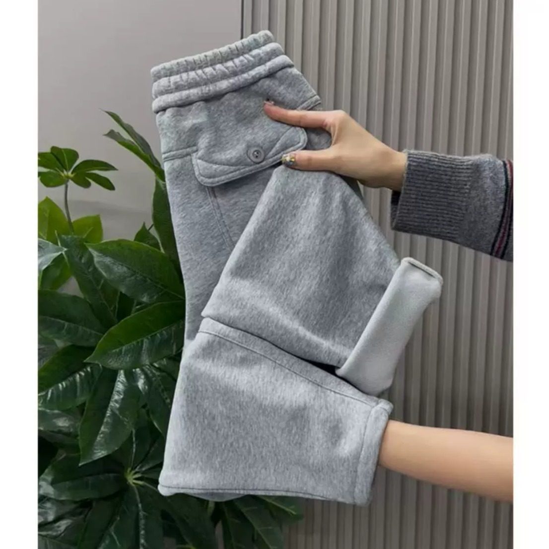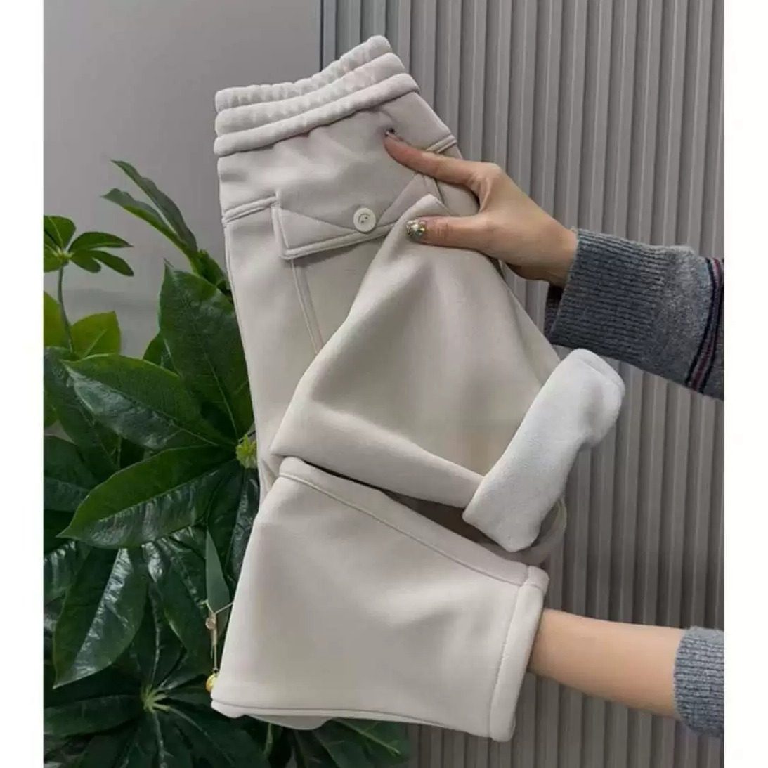 加绒加厚直筒休闲裤女冬季高腰保暖哈伦裤宽松百搭显瘦小脚运动裤