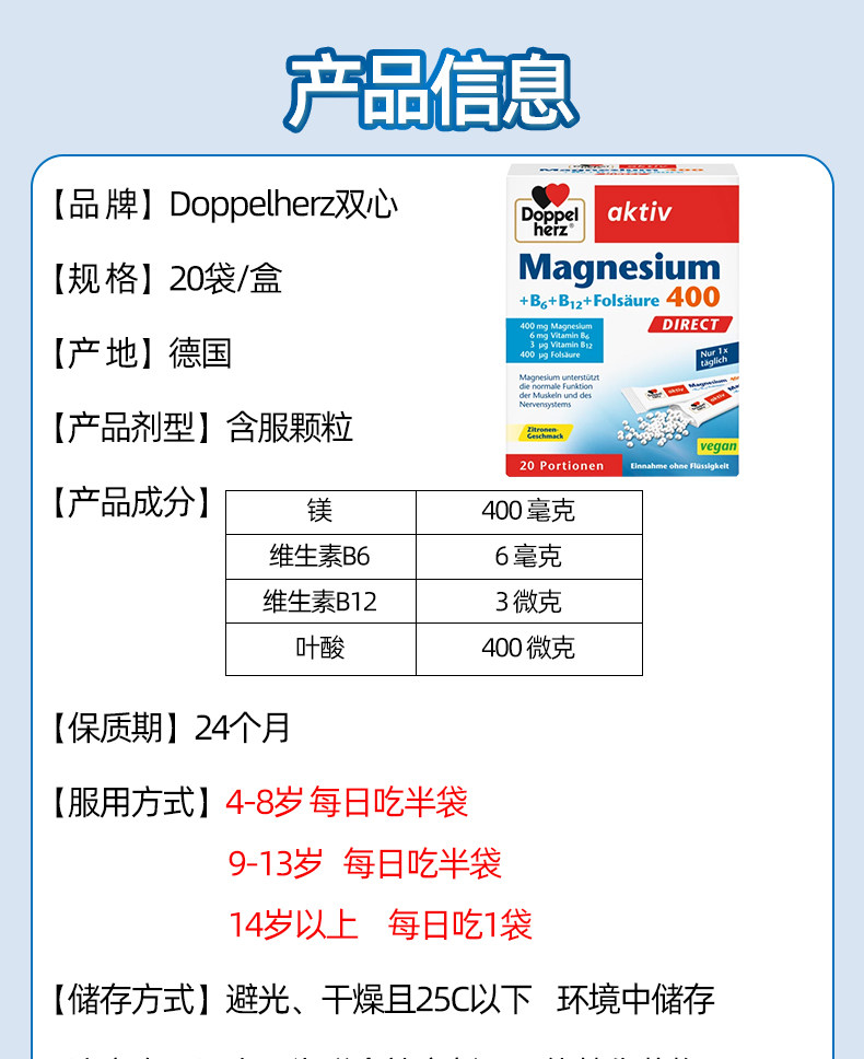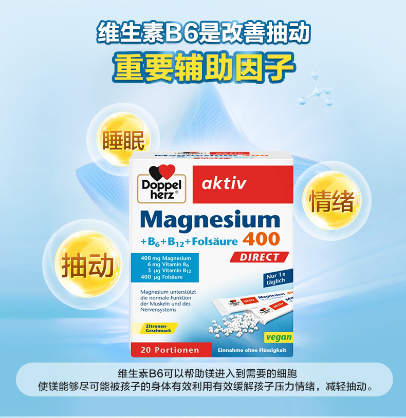 双心儿童镁补充剂B族颗粒抽动症维生素B6注意力不集中抽动多动