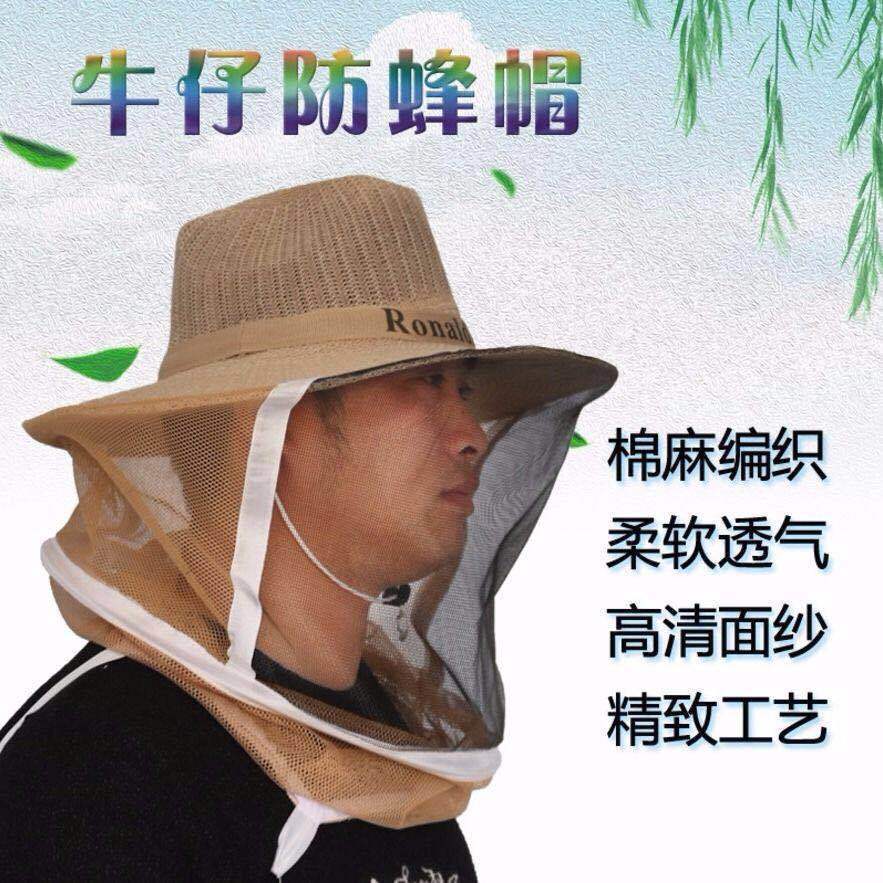 养蜂面罩新款透气牛仔养蜂防护帽加厚型蜂衣面网防蚊头罩全套工具