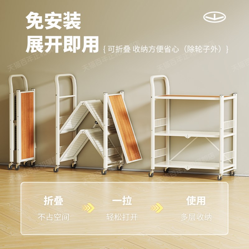 免安装折叠厨房置物架落地多层烤箱放锅架微波炉储物移动收纳推车